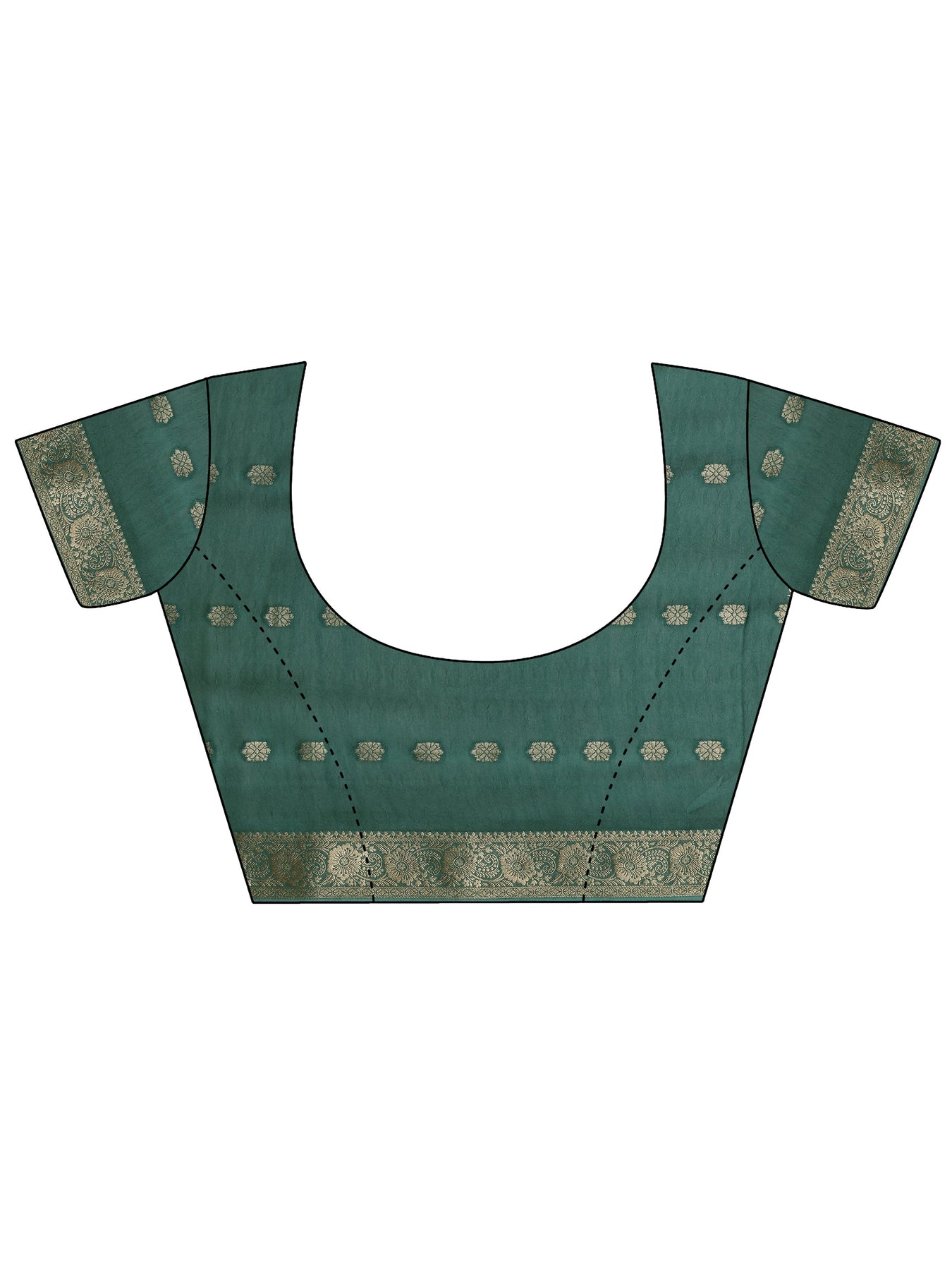 Green Printed Silk Blend Saree With Unstitched Blouse Piece