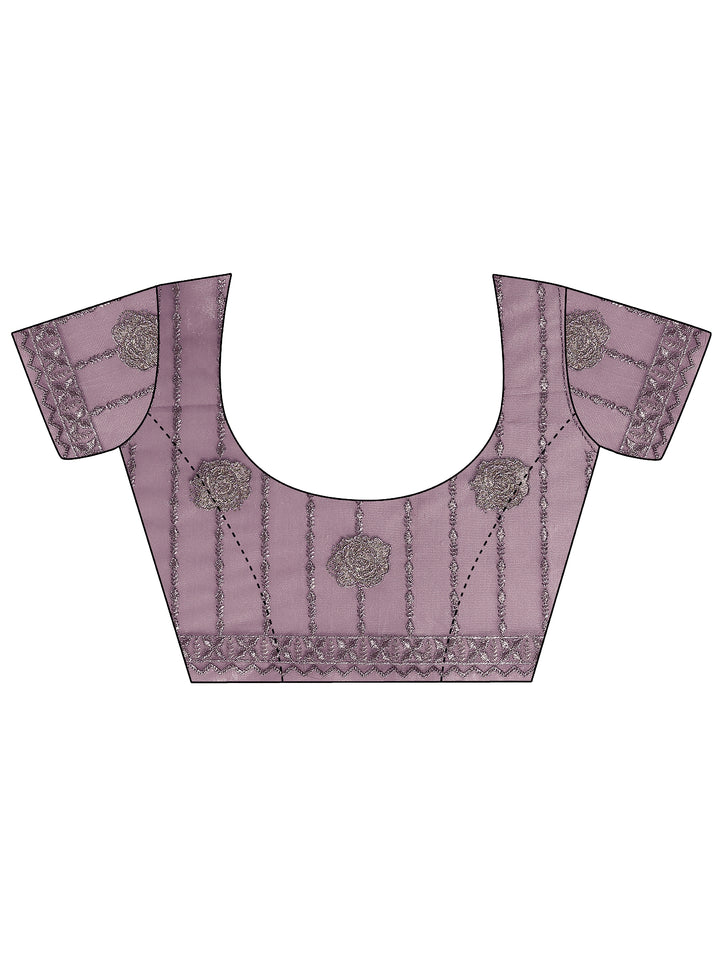 Our Lavender Embroidered Nylon Saree. Complemented With An Unstitched Blouse Piece. This Charming Saree Is Perfect For Festive Occasions.
