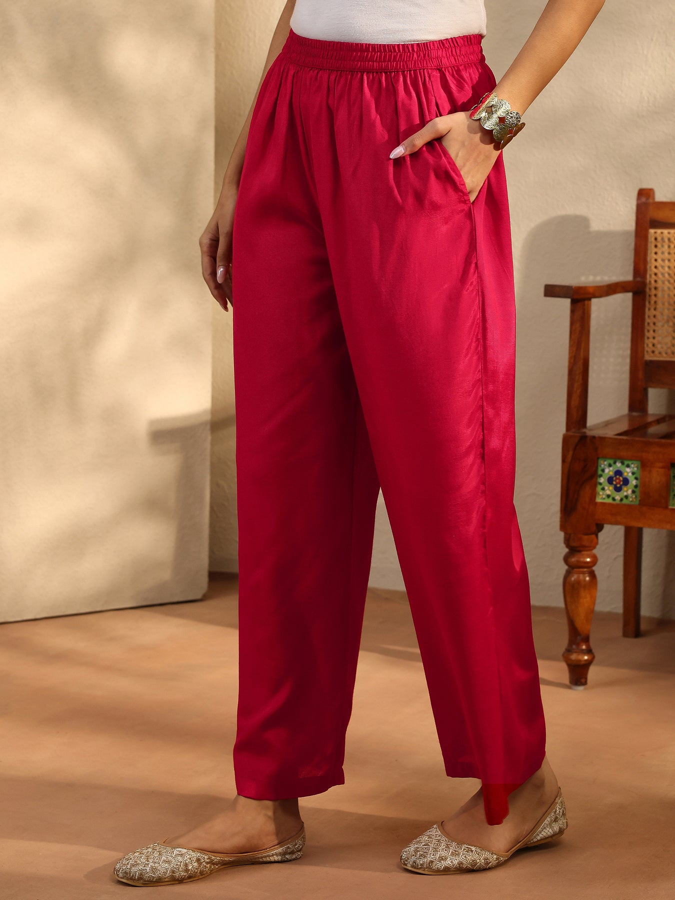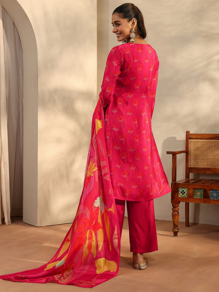 Libas Art Red Printed Crepe Straight Suit Set With Dupatta
