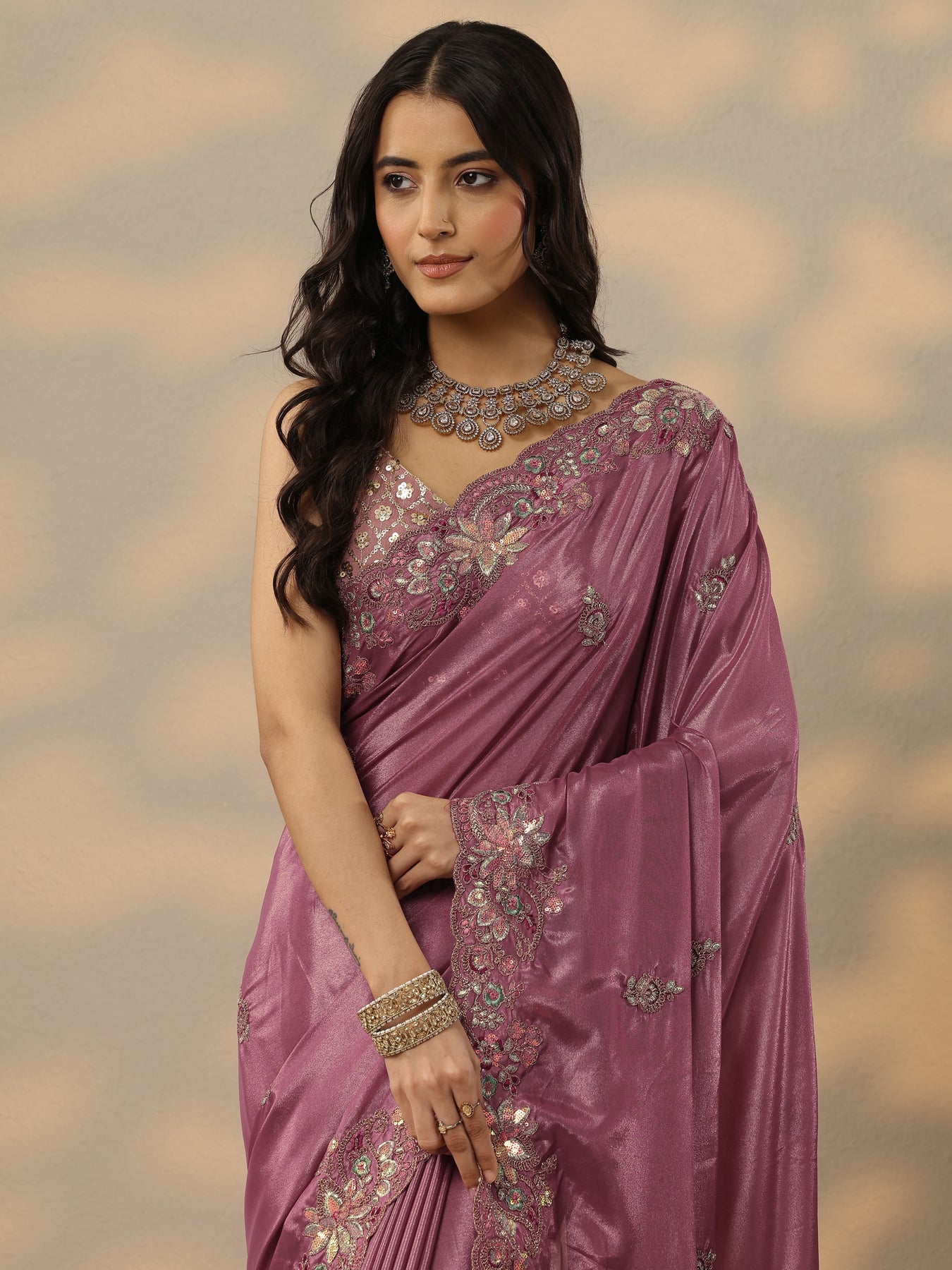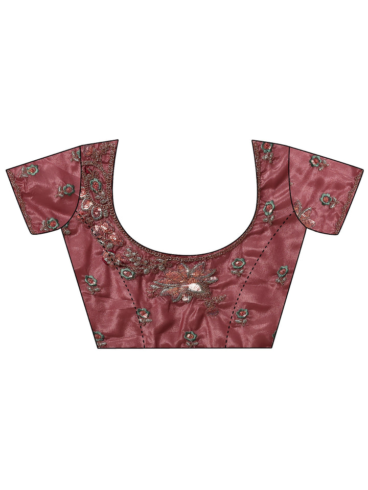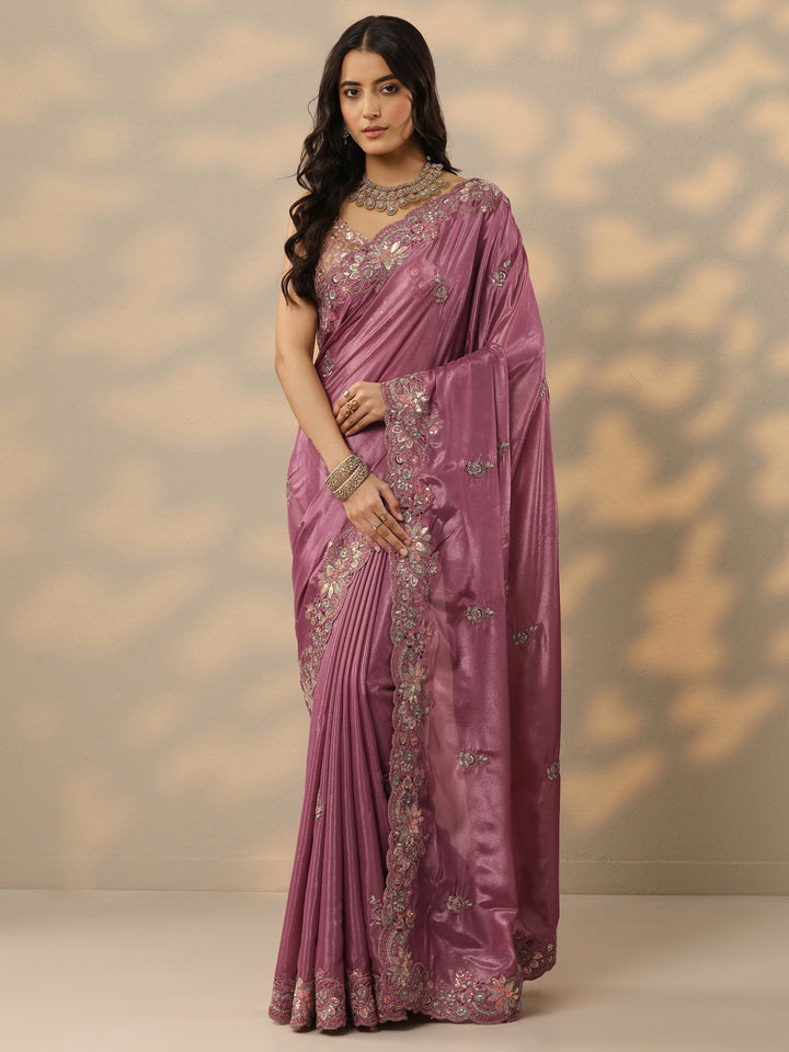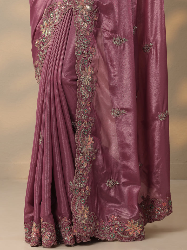 Mauve Embroidered Silk Blend Saree With Unstitched Blouse Piece
