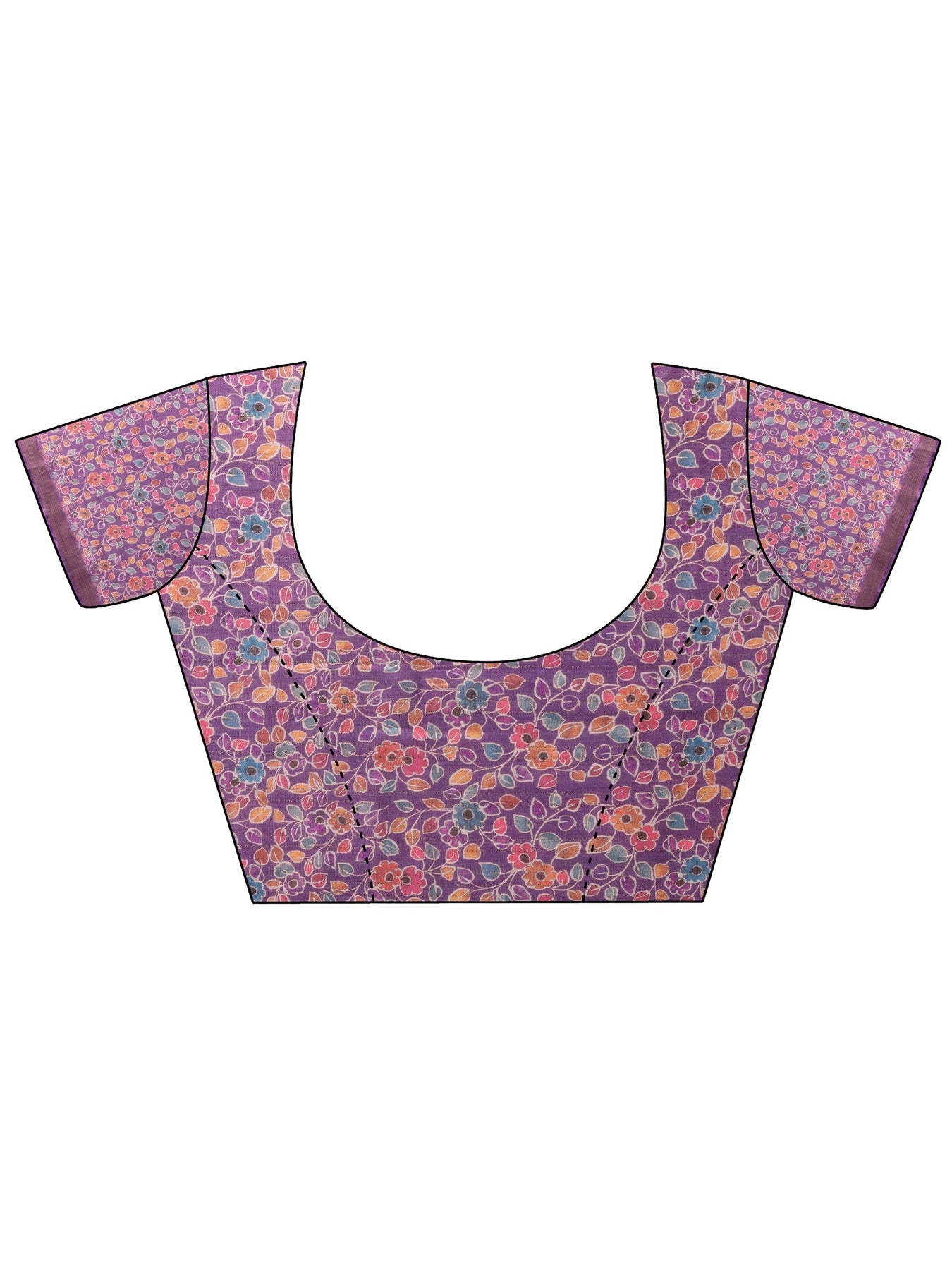 Mauve Printed Silk Blend Sarees With Unstitched Blouse Piece