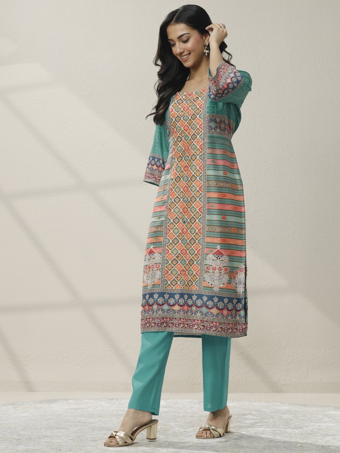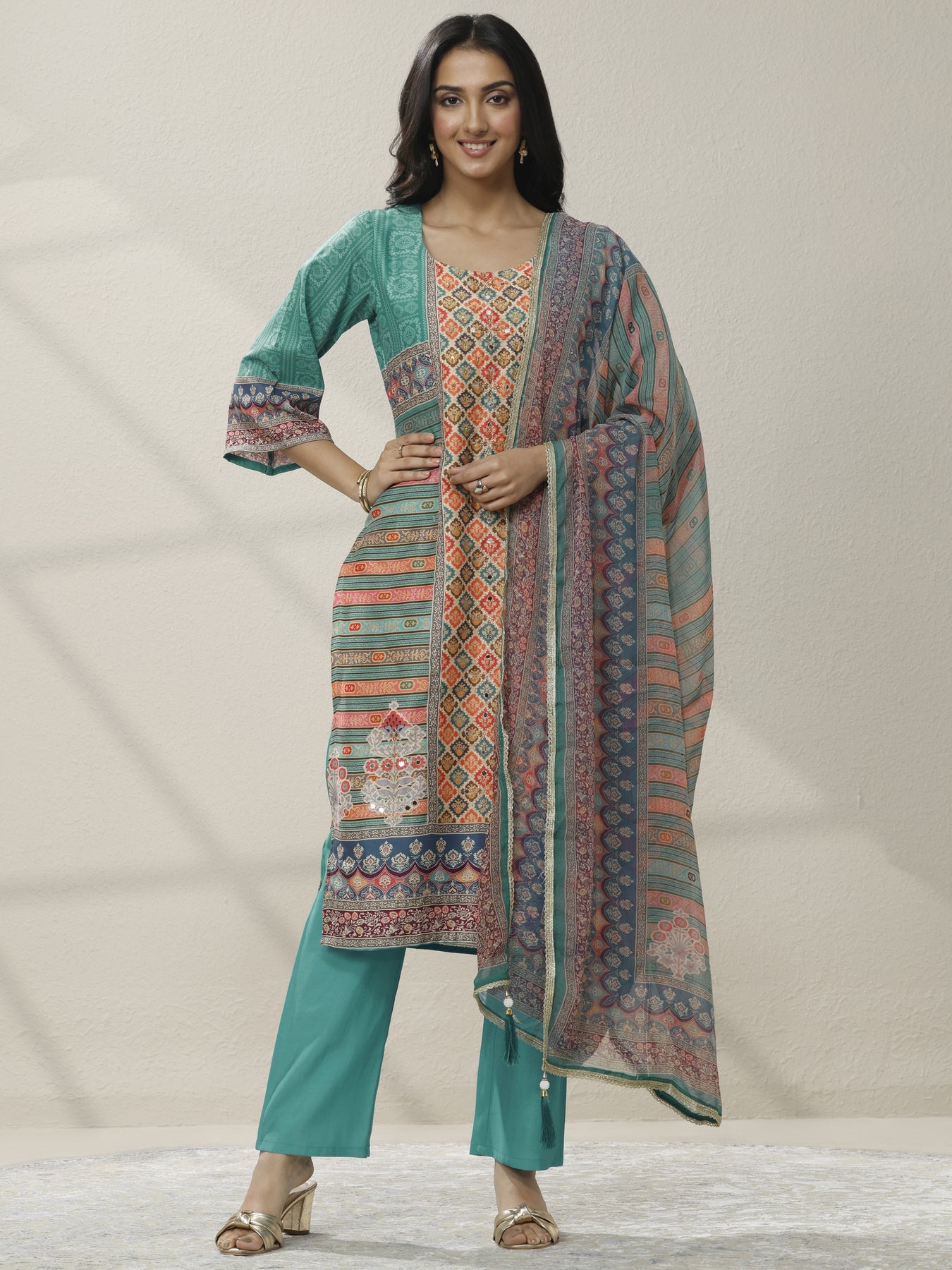 Multi Printed Crepe Straight Suit Set With Dupatta