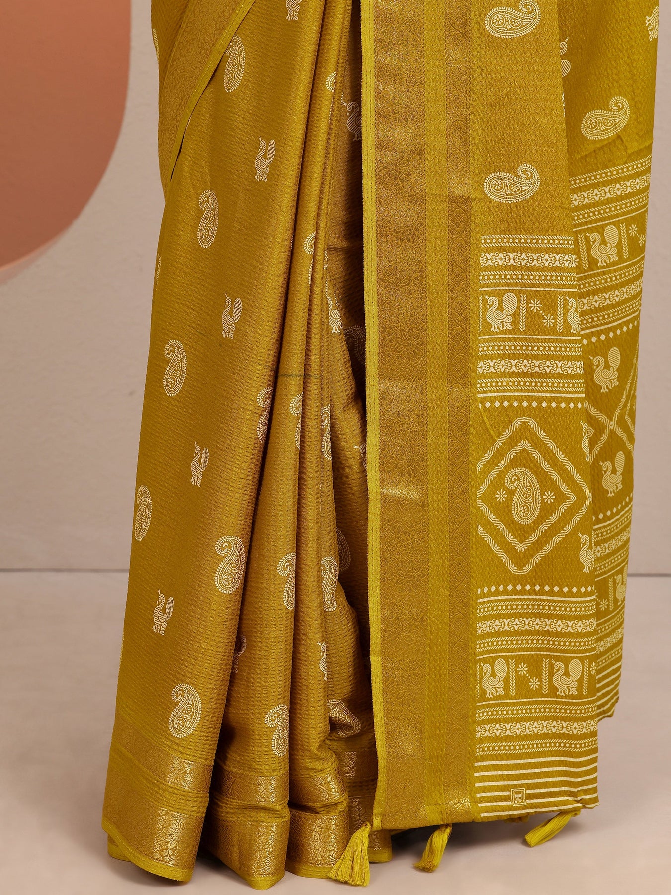 Mustard Paisley Printed Silk Blend Saree With Unstitched Blouse Piece