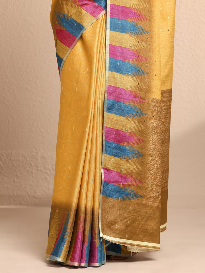 Mustard Woven Design Silk Blend Saree With Unstitched Blouse Piece
