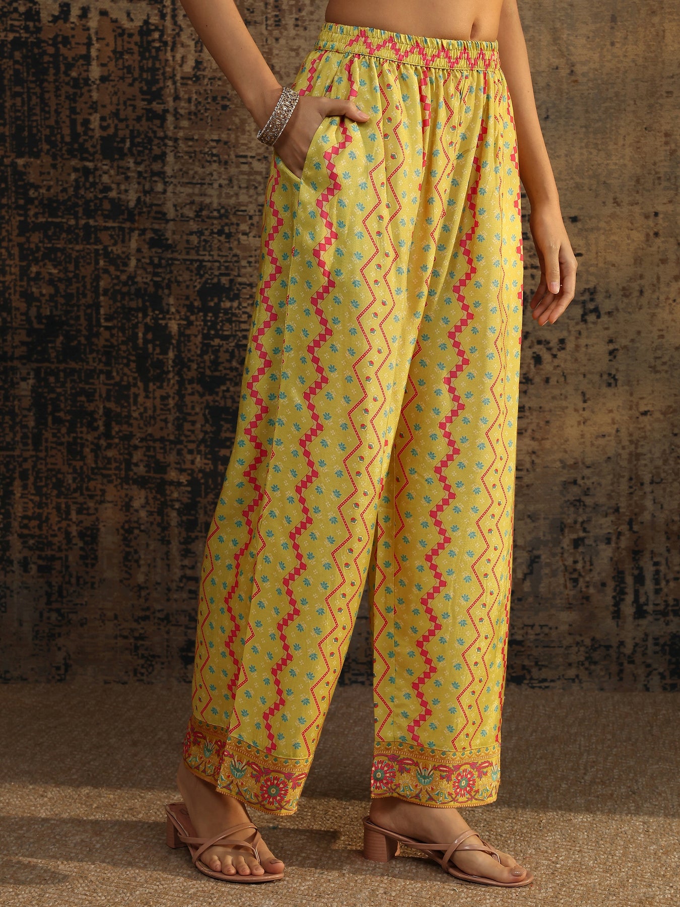 Our 3-piece olive green muslin a-line kurta set features a round neckline, regular sleeves, and statement yoke. Complemented with palazzo pants with a partially elasticated waistband and a solid dupatta. Adorned with floral printed, this style is perfect for festive occasions.