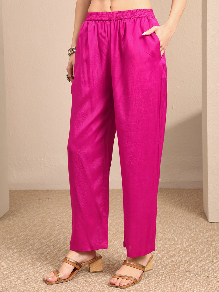 Our 3-piece orange and pink silk blend kurta set features a straight-fit kurta with a round neckline, regular sleeves, and statement yoke. Complemented with straight pants with a partially elasticated waistband and 2 pockets, and a dyed dupatta. Adorned with bandhani printed, this style is perfect for festive occasions.