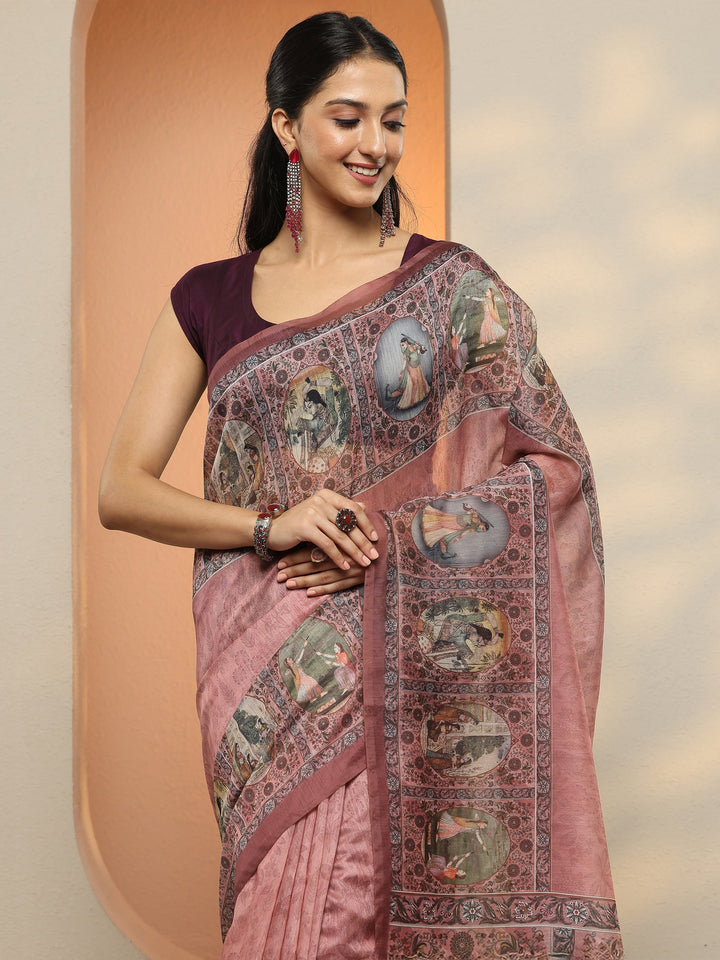 Our Pink Printed Silk Blend Saree Features Captivating Embellishments. Complemented With A Stitched Blouse. This Charming Saree Is Perfect For Festive Occasions.