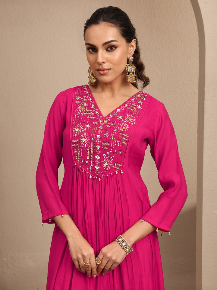 Pink Embroidered Silk blend Anarkali Suit Set With Dupatta