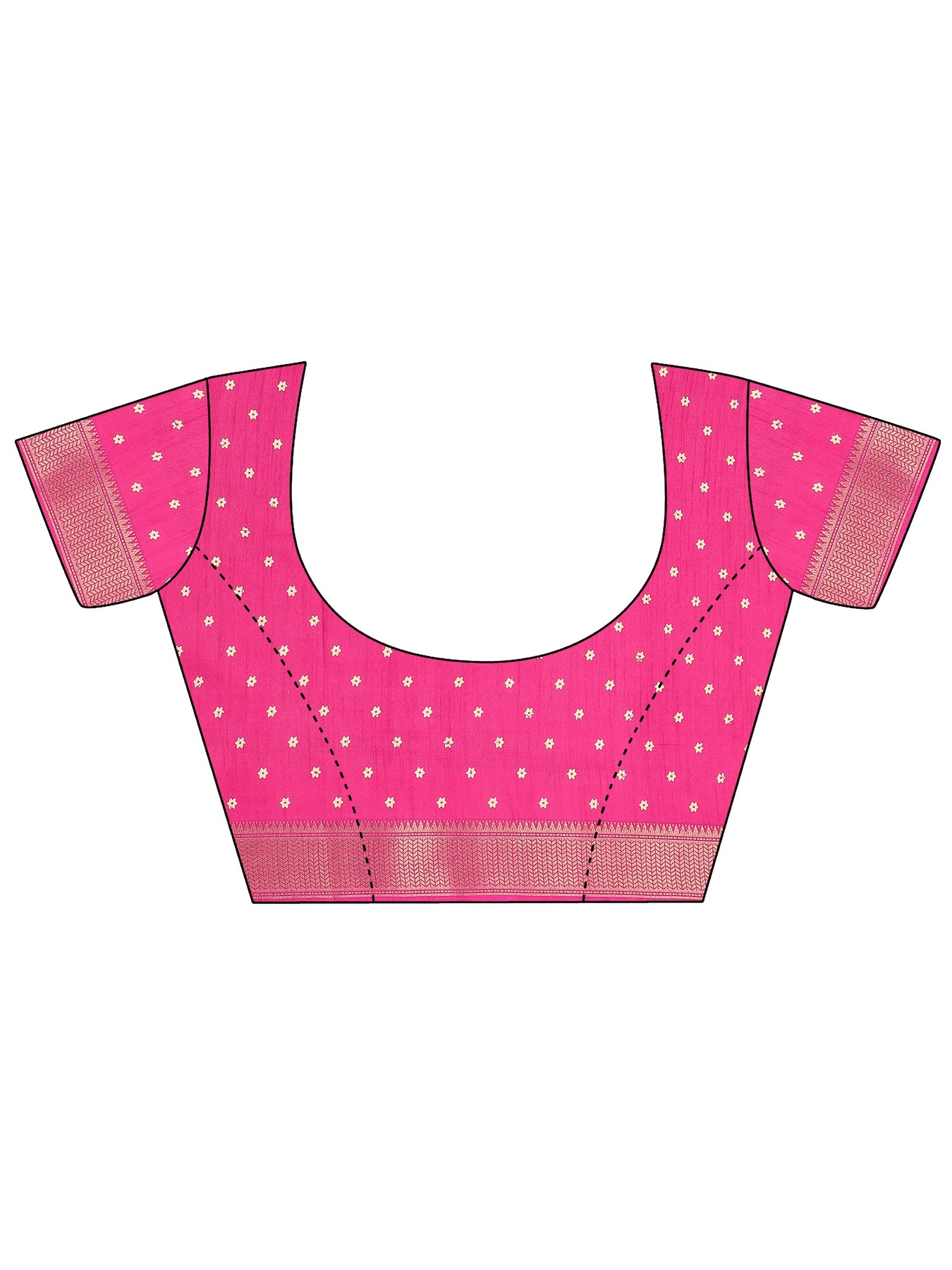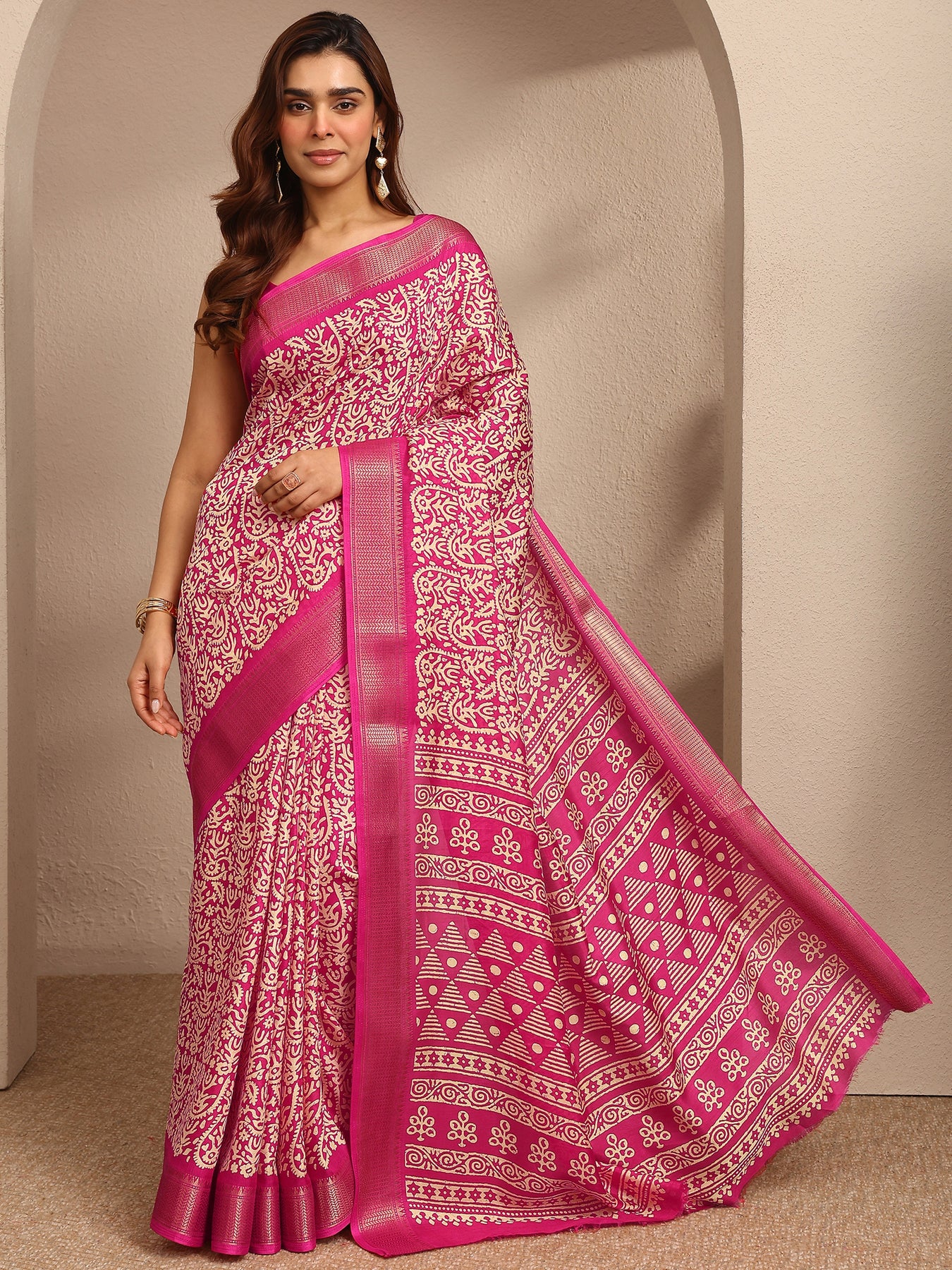 Pink Printed Silk Blend Saree With Unstitched Blouse Piece