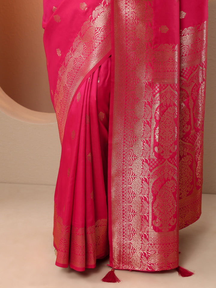 Pink Woven Design Banarasi Silk Blend Saree With Unstitched Blouse Piece