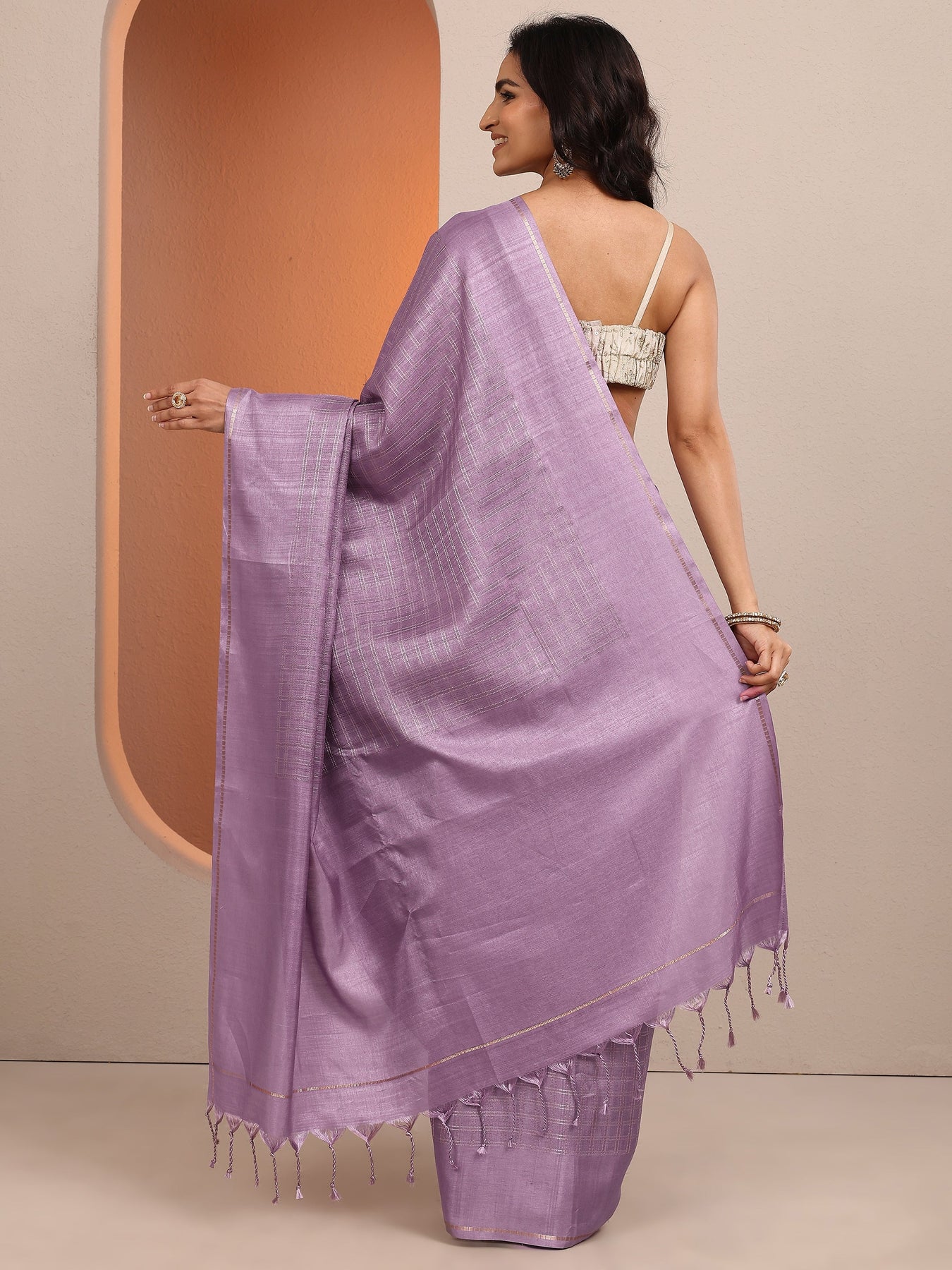 Purple Embellished Silk Blend Saree With Unstitched Blouse Piece