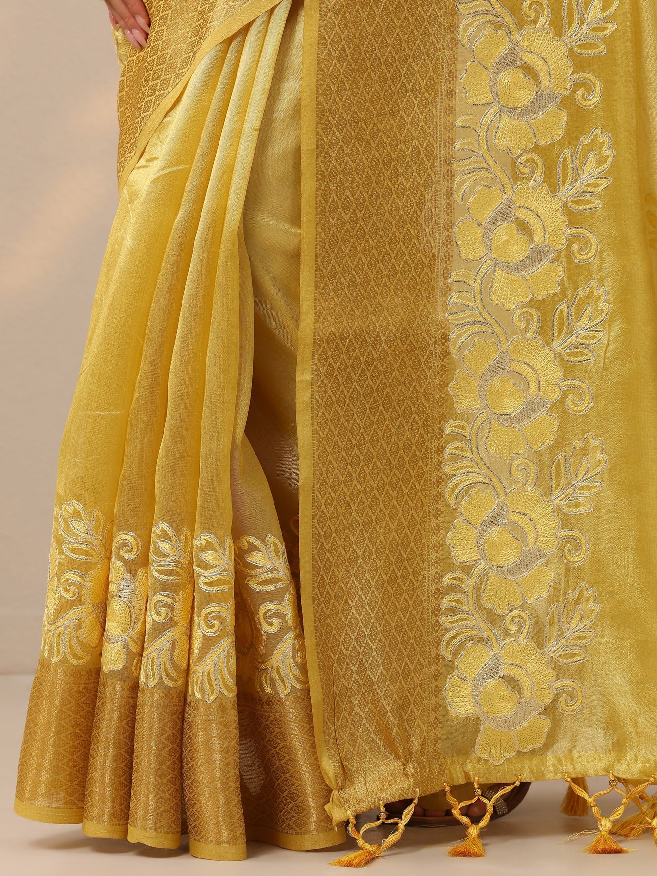 Yellow Embroidered Banarasi Silk Blend Saree With Unstitched Blouse Piece