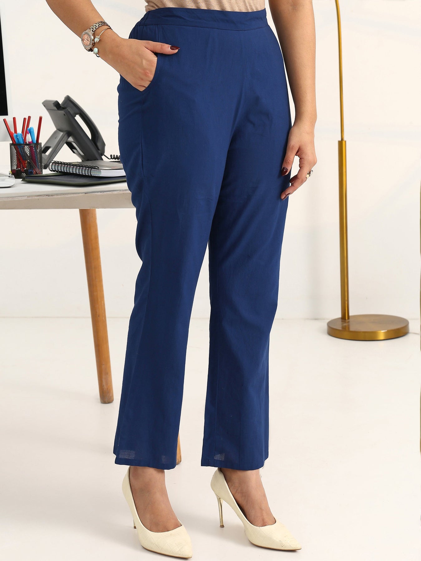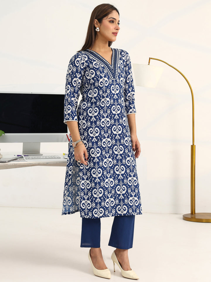 Blue Ethnic Motifs Printed Cotton Blend Straight Suit Set With Dupatta