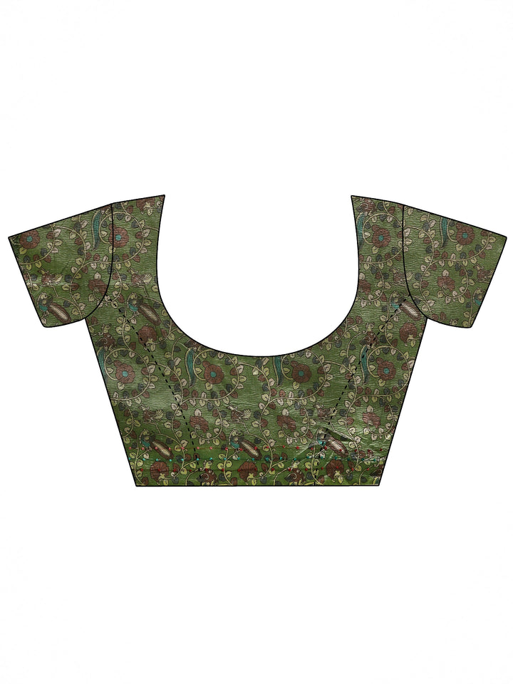Our Green Printed Silk Blend Saree Features Captivating Top Print. Complemented With An Unstitched Blouse Piece. This Charming Saree Is Perfect For Casual Wear.