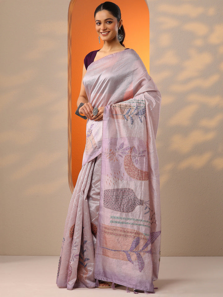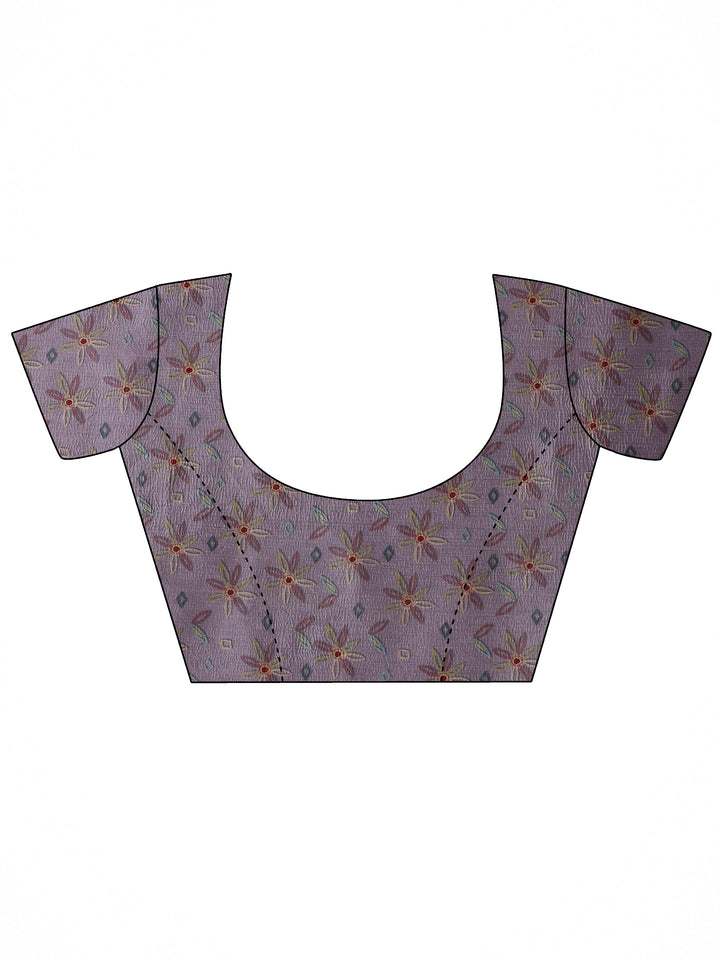 Lavender Printed Silk Blend Saree With Unstitched Blouse Piece