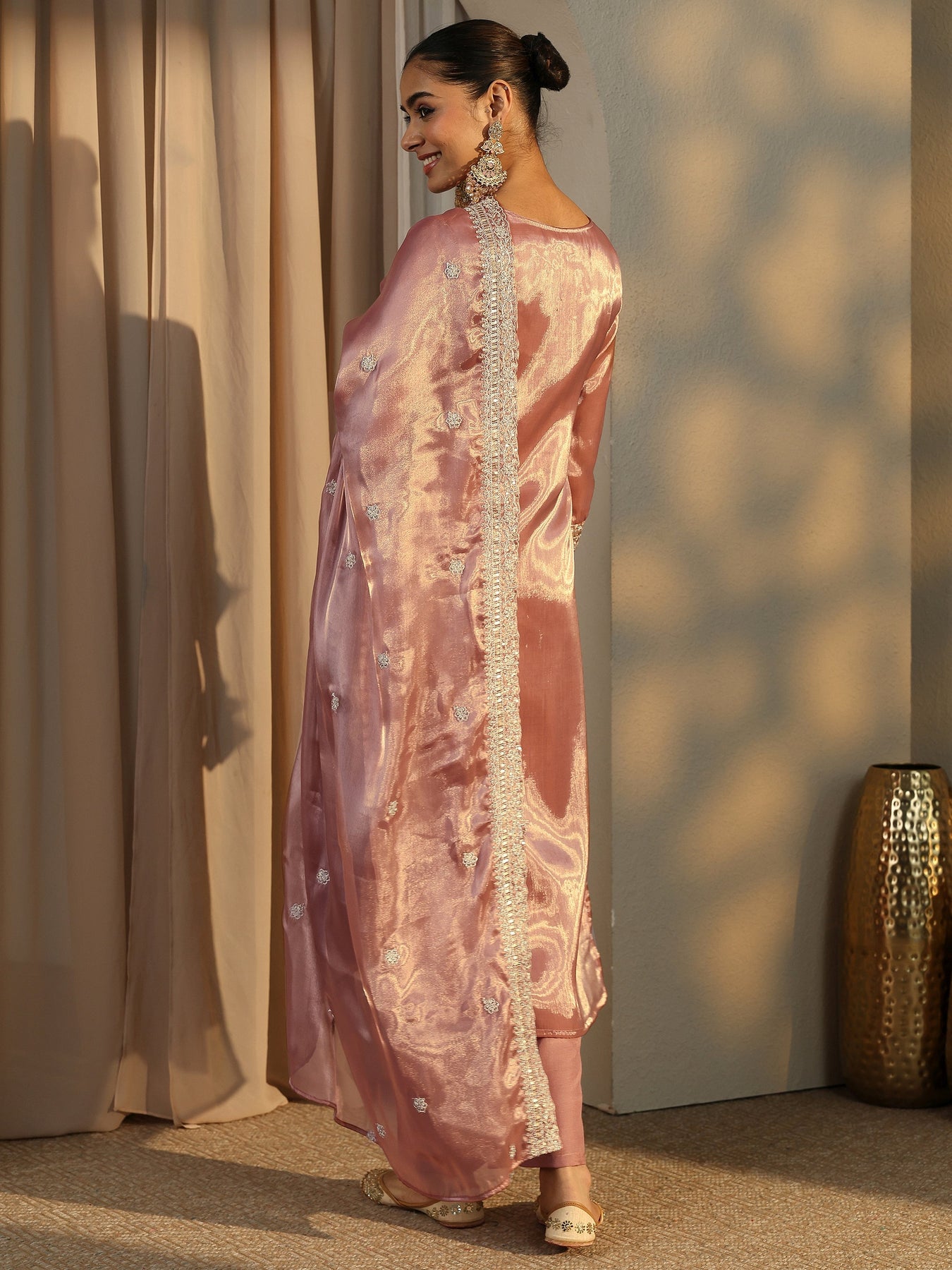 Pink Embroidered Organza Straight Suit Set With Dupatta