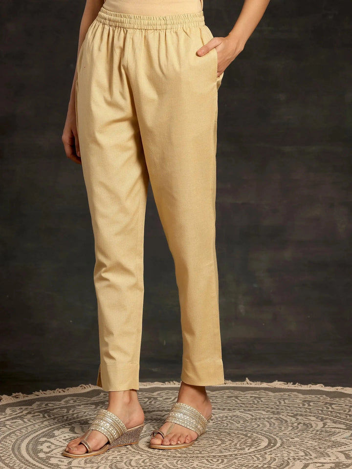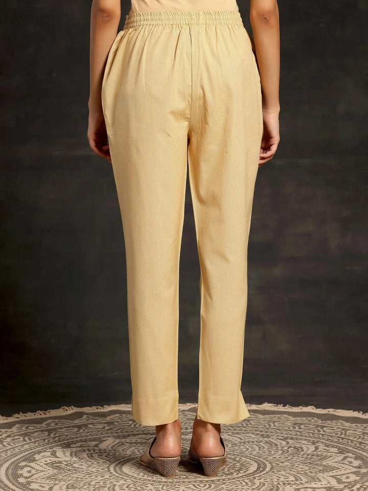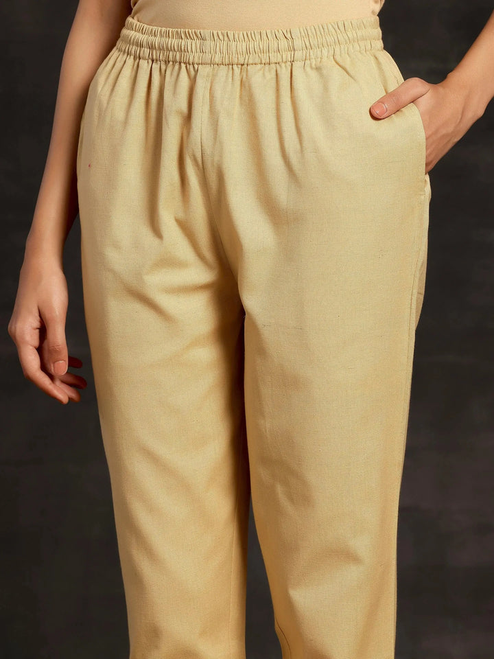 Our cream mid-rise trousers, crafted in cotton fabric, feature a fully elasticated waistband and roomy pockets are an ideal fit for work and beyond.