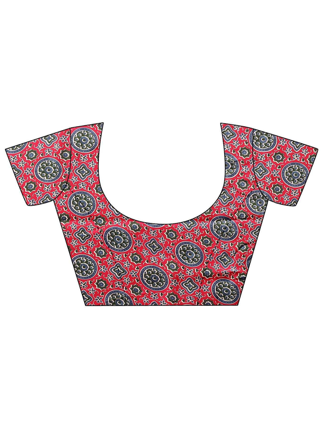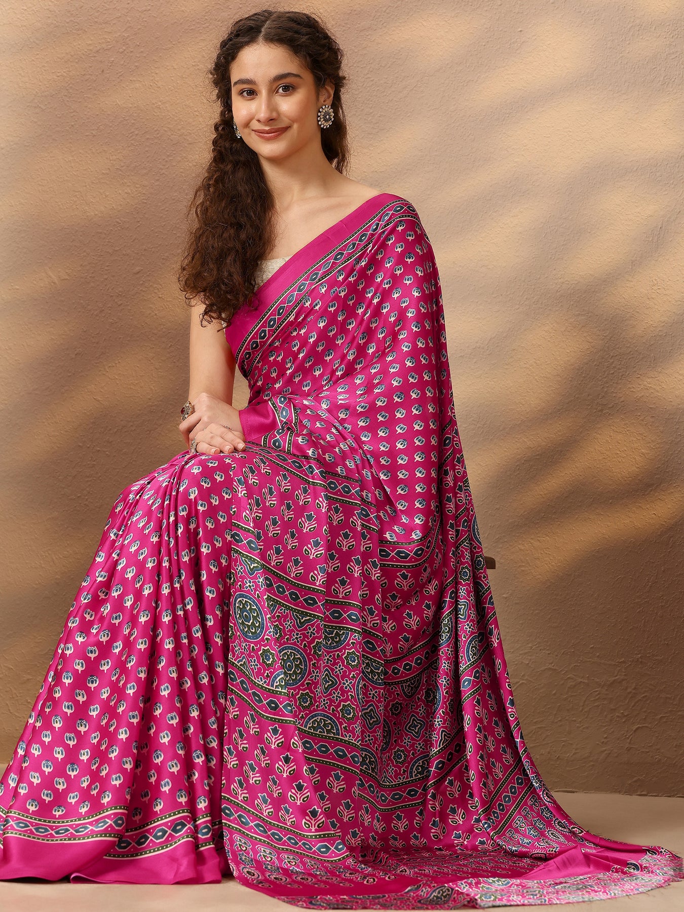 Pink Printed Satin Saree With Unstitched Blouse Piece