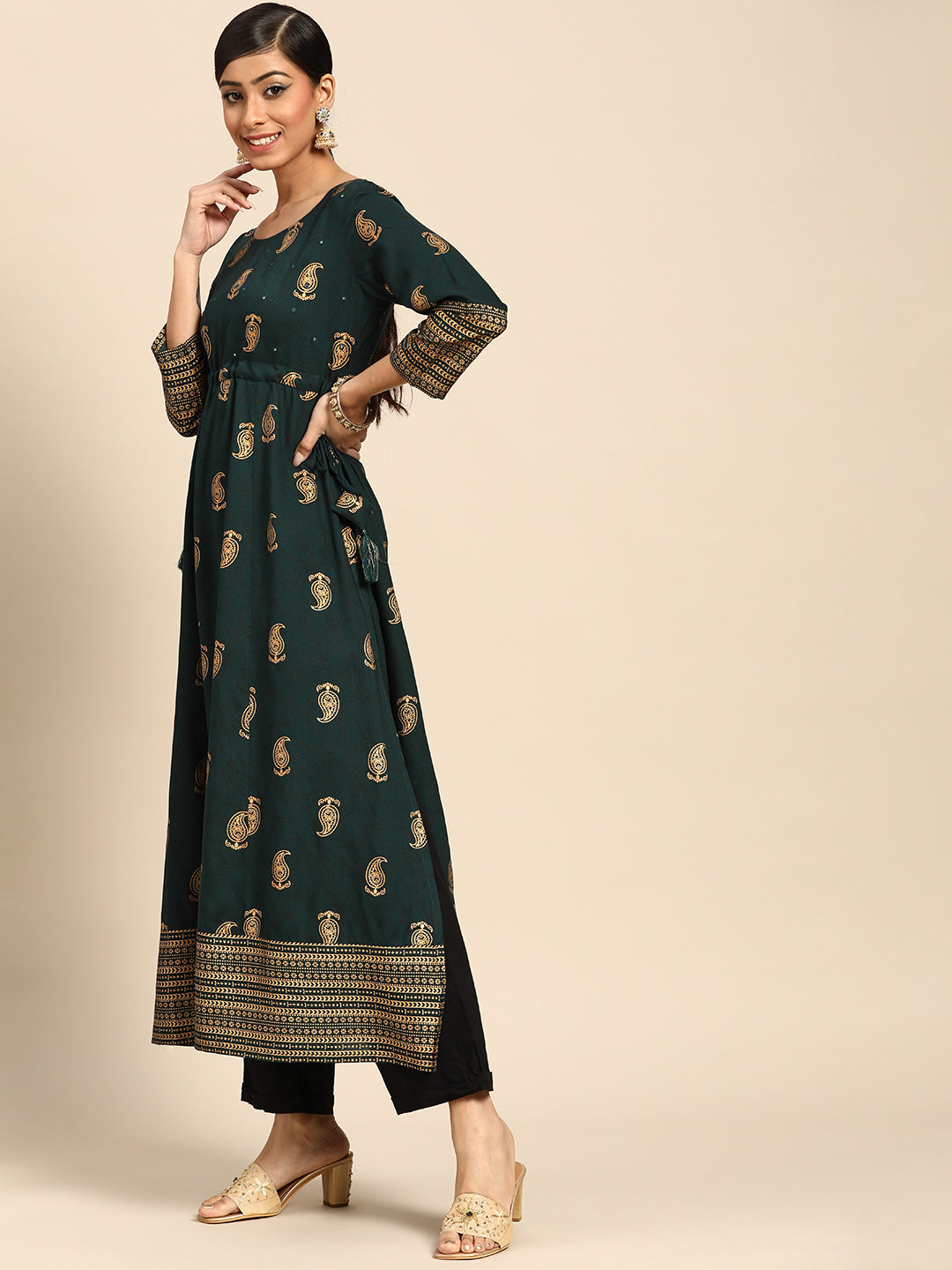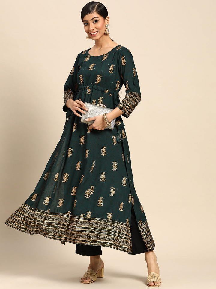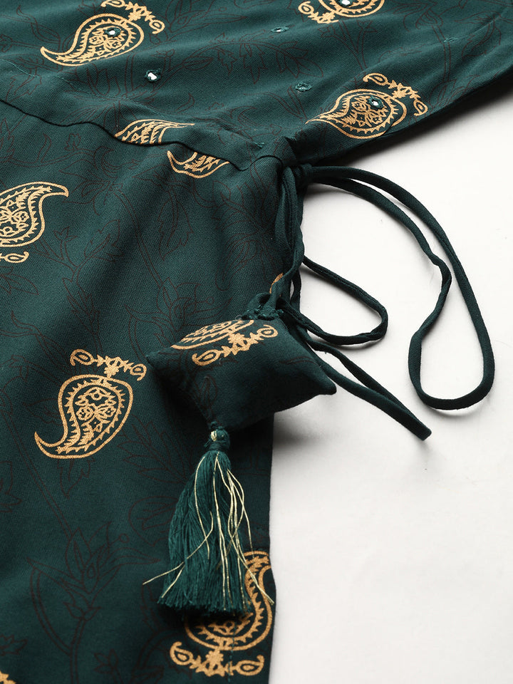 Green Printed Rayon Kurta