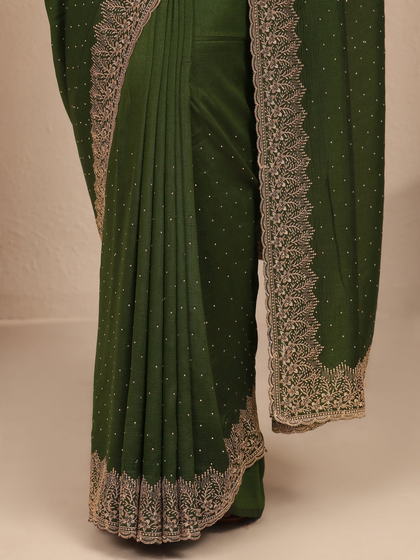Green Embellished Silk Blend Saree With Unstitched Blouse Piece
