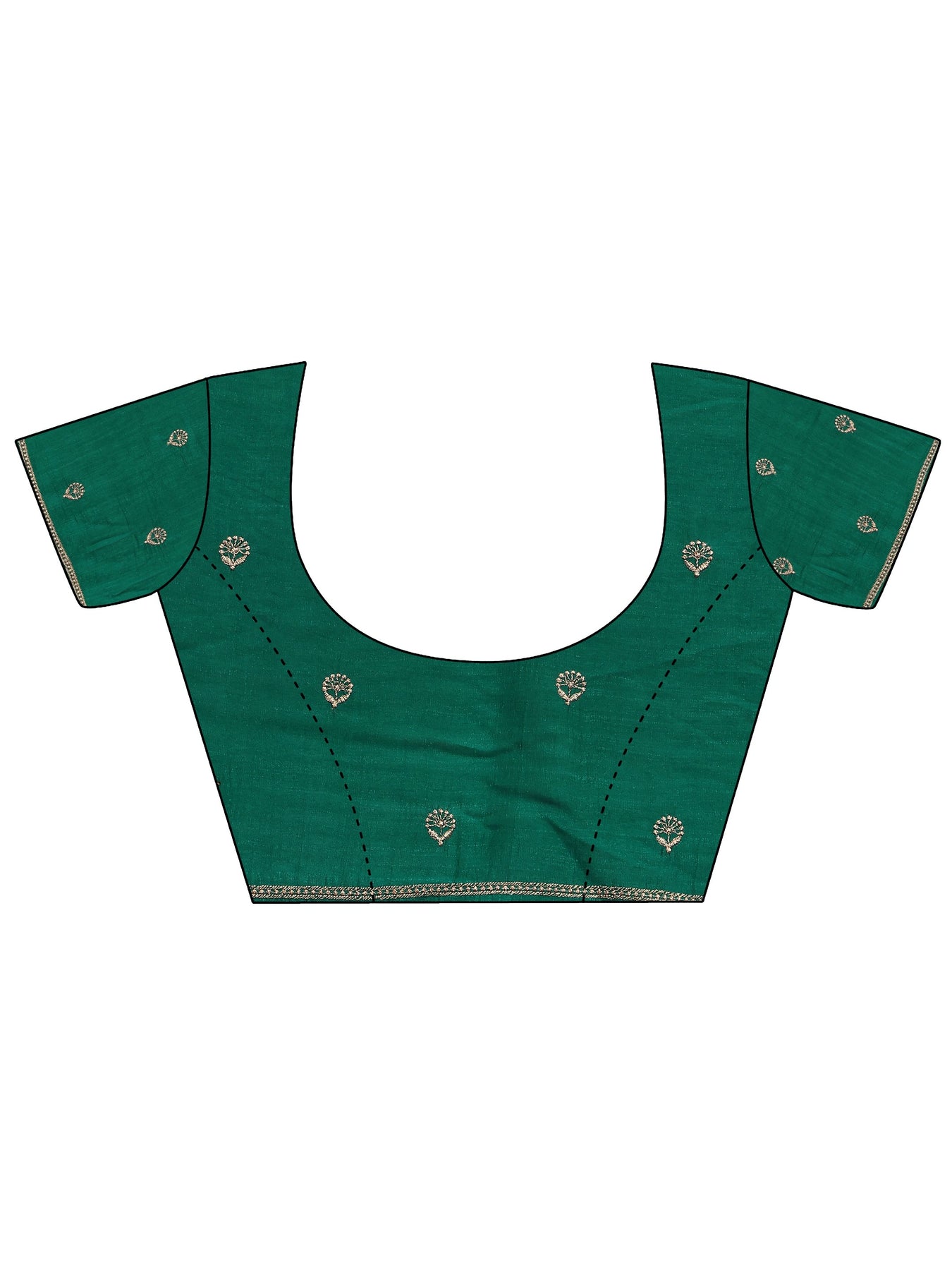 Green Embellished Silk Blend Saree With Unstitched Blouse Piece