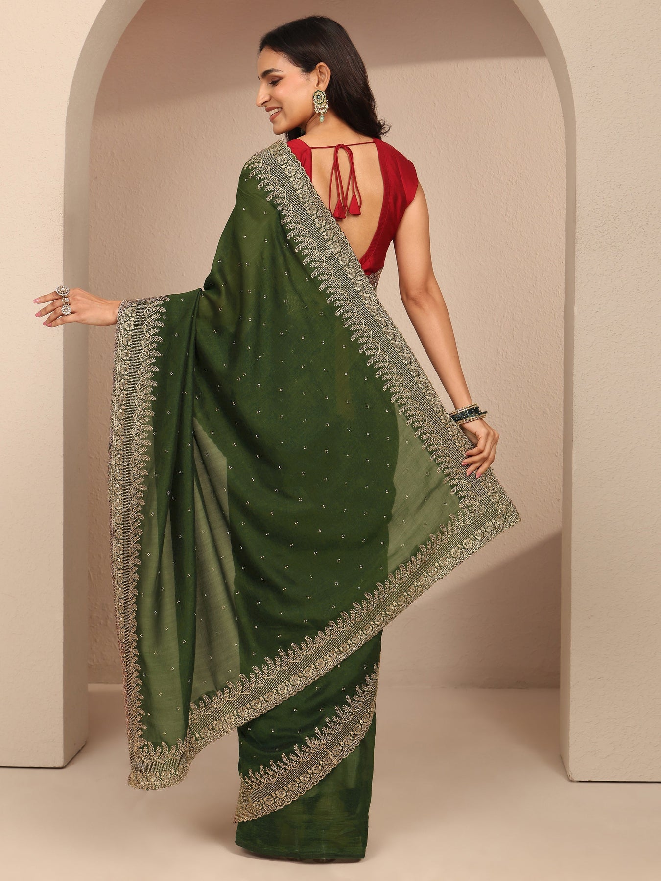 Green Embellished Silk Blend Saree With Unstitched Blouse Piece