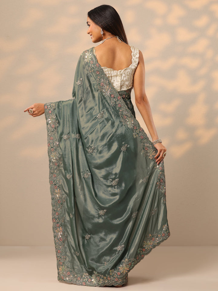 Green Embroidered Silk blend Saree With Unstitched Blouse Piece