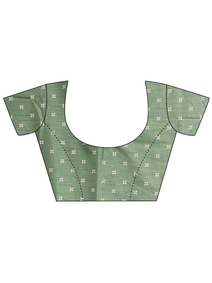 Green Paisley Printed Silk Blend Saree With Unstitched Blouse Piece