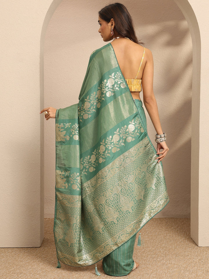 Green Woven Design Banarsi Silk Blend Saree With Unstitched Blouse Piece