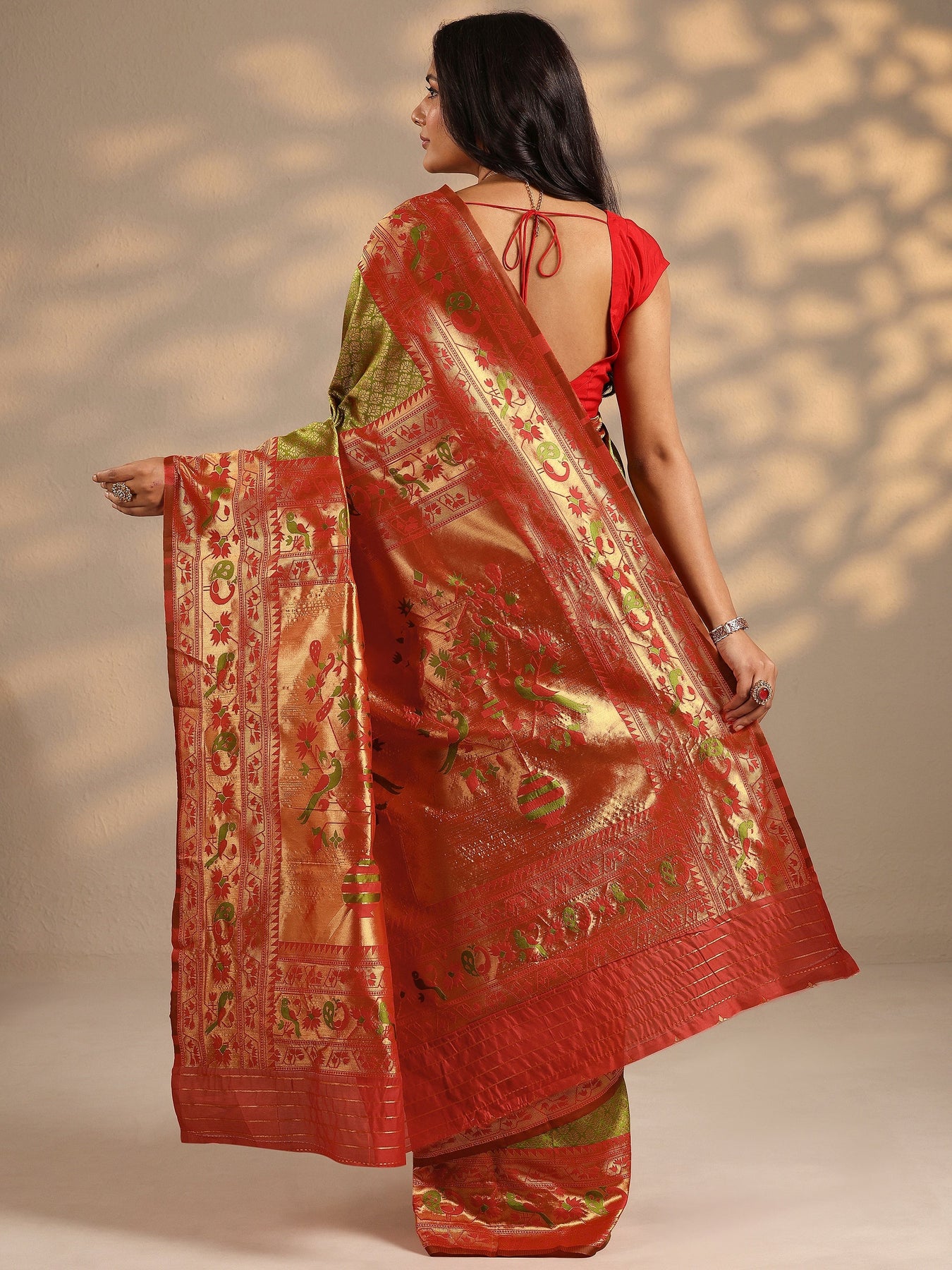 {"id":8562380701846,"title":"Green Woven Design Silk Blend Saree With Unstitched Blouse Piece","handle":"green-woven-design-silk-blend-saree-with-unstitched-blouse-piece-96351p","description":"\u003cp\u003eOur Green Printed Silk Blend Saree Features Captivating Floral Print. Complemented With A Blouse Piece. This Charming Saree Is Perfect For Festive Occasions.\u003c\/p\u003e","published_at":"2025-12-04T17:43:38+05:30","created_at":"2025-12-03T18:11:49+05:30","vendor":"Libas","type":"All Products","tags":["96351P","AW25","AW25 SAREE","Banarasi","Banarsi Sarees","EXCLA","Green","Green Sarees","New Launch","NEWARRIVALSAW25","NEWARRIVALSSS25","SAREE","Sarees","Self Design Sareess","Silk blend","Silk Sarees"],"price":299900,"price_min":299900,"price_max":299900,"available":true,"price_varies":false,"compare_at_price":299900,"compare_at_price_min":299900,"compare_at_price_max":299900,"compare_at_price_varies":false,"variants":[{"id":45916786622614,"title":"Onesize","option1":"Onesize","option2":null,"option3":null,"sku":"96351P","requires_shipping":true,"taxable":true,"featured_image":{"id":40328714158230,"product_id":8562380701846,"position":1,"created_at":"2025-12-03T18:11:49+05:30","updated_at":"2025-12-03T18:11:51+05:30","alt":null,"width":2160,"height":2880,"src":"\/\/www.libas.in\/cdn\/shop\/files\/Green-Woven-Design-Silk-Blend-Saree-With-Unstitched-Blouse-96351P_8b69fac5-5024-4cba-9790-cc877b4200fe.jpg?v=1764765711","variant_ids":[45916786622614]},"available":true,"name":"Green Woven Design Silk Blend Saree With Unstitched Blouse Piece - Onesize","public_title":"Onesize","options":["Onesize"],"price":299900,"weight":1,"compare_at_price":299900,"inventory_management":"shopify","barcode":"8909461119073","featured_media":{"alt":null,"id":31531966562454,"position":1,"preview_image":{"aspect_ratio":0.75,"height":2880,"width":2160,"src":"\/\/www.libas.in\/cdn\/shop\/files\/Green-Woven-Design-Silk-Blend-Saree-With-Unstitched-Blouse-96351P_8b69fac5-5024-4cba-9790-cc877b4200fe.jpg?v=1764765711"}},"requires_selling_plan":false,"selling_plan_allocations":[],"quantity_rule":{"min":1,"max":null,"increment":1}}],"images":["\/\/www.libas.in\/cdn\/shop\/files\/Green-Woven-Design-Silk-Blend-Saree-With-Unstitched-Blouse-96351P_8b69fac5-5024-4cba-9790-cc877b4200fe.jpg?v=1764765711","\/\/www.libas.in\/cdn\/shop\/files\/96351P_1_18e9e695-946b-4658-921c-8ac034082c72.jpg?v=1764765711","\/\/www.libas.in\/cdn\/shop\/files\/96351P_2_5cc363ae-1c51-4bed-8588-042d87edf29e.jpg?v=1764765711","\/\/www.libas.in\/cdn\/shop\/files\/96351P_3_15359b33-0e03-4844-88c4-5247928e4fa2.jpg?v=1764765711","\/\/www.libas.in\/cdn\/shop\/files\/96351P_4_850525b0-466c-4132-8cd5-eb7acb474752.jpg?v=1764765711","\/\/www.libas.in\/cdn\/shop\/files\/96351P_5_4b697122-ae7f-4c56-9134-cd7ad749e5d0.jpg?v=1764765711","\/\/www.libas.in\/cdn\/shop\/files\/96351P_6_8b347ed4-da93-4a88-9031-02bf604ac6c1.jpg?v=1764765711"],"featured_image":"\/\/www.libas.in\/cdn\/shop\/files\/Green-Woven-Design-Silk-Blend-Saree-With-Unstitched-Blouse-96351P_8b69fac5-5024-4cba-9790-cc877b4200fe.jpg?v=1764765711","options":["Size"],"media":[{"alt":null,"id":31531966562454,"position":1,"preview_image":{"aspect_ratio":0.75,"height":2880,"width":2160,"src":"\/\/www.libas.in\/cdn\/shop\/files\/Green-Woven-Design-Silk-Blend-Saree-With-Unstitched-Blouse-96351P_8b69fac5-5024-4cba-9790-cc877b4200fe.jpg?v=1764765711"},"aspect_ratio":0.75,"height":2880,"media_type":"image","src":"\/\/www.libas.in\/cdn\/shop\/files\/Green-Woven-Design-Silk-Blend-Saree-With-Unstitched-Blouse-96351P_8b69fac5-5024-4cba-9790-cc877b4200fe.jpg?v=1764765711","width":2160},{"alt":null,"id":31531966595222,"position":2,"preview_image":{"aspect_ratio":0.75,"height":2880,"width":2160,"src":"\/\/www.libas.in\/cdn\/shop\/files\/96351P_1_18e9e695-946b-4658-921c-8ac034082c72.jpg?v=1764765711"},"aspect_ratio":0.75,"height":2880,"media_type":"image","src":"\/\/www.libas.in\/cdn\/shop\/files\/96351P_1_18e9e695-946b-4658-921c-8ac034082c72.jpg?v=1764765711","width":2160},{"alt":null,"id":31531966627990,"position":3,"preview_image":{"aspect_ratio":0.75,"height":2880,"width":2160,"src":"\/\/www.libas.in\/cdn\/shop\/files\/96351P_2_5cc363ae-1c51-4bed-8588-042d87edf29e.jpg?v=1764765711"},"aspect_ratio":0.75,"height":2880,"media_type":"image","src":"\/\/www.libas.in\/cdn\/shop\/files\/96351P_2_5cc363ae-1c51-4bed-8588-042d87edf29e.jpg?v=1764765711","width":2160},{"alt":null,"id":31531966660758,"position":4,"preview_image":{"aspect_ratio":0.75,"height":2880,"width":2160,"src":"\/\/www.libas.in\/cdn\/shop\/files\/96351P_3_15359b33-0e03-4844-88c4-5247928e4fa2.jpg?v=1764765711"},"aspect_ratio":0.75,"height":2880,"media_type":"image","src":"\/\/www.libas.in\/cdn\/shop\/files\/96351P_3_15359b33-0e03-4844-88c4-5247928e4fa2.jpg?v=1764765711","width":2160},{"alt":null,"id":31531966693526,"position":5,"preview_image":{"aspect_ratio":0.75,"height":2880,"width":2160,"src":"\/\/www.libas.in\/cdn\/shop\/files\/96351P_4_850525b0-466c-4132-8cd5-eb7acb474752.jpg?v=1764765711"},"aspect_ratio":0.75,"height":2880,"media_type":"image","src":"\/\/www.libas.in\/cdn\/shop\/files\/96351P_4_850525b0-466c-4132-8cd5-eb7acb474752.jpg?v=1764765711","width":2160},{"alt":null,"id":31531966726294,"position":6,"preview_image":{"aspect_ratio":0.75,"height":2880,"width":2160,"src":"\/\/www.libas.in\/cdn\/shop\/files\/96351P_5_4b697122-ae7f-4c56-9134-cd7ad749e5d0.jpg?v=1764765711"},"aspect_ratio":0.75,"height":2880,"media_type":"image","src":"\/\/www.libas.in\/cdn\/shop\/files\/96351P_5_4b697122-ae7f-4c56-9134-cd7ad749e5d0.jpg?v=1764765711","width":2160},{"alt":null,"id":31531966759062,"position":7,"preview_image":{"aspect_ratio":0.75,"height":2880,"width":2160,"src":"\/\/www.libas.in\/cdn\/shop\/files\/96351P_6_8b347ed4-da93-4a88-9031-02bf604ac6c1.jpg?v=1764765711"},"aspect_ratio":0.75,"height":2880,"media_type":"image","src":"\/\/www.libas.in\/cdn\/shop\/files\/96351P_6_8b347ed4-da93-4a88-9031-02bf604ac6c1.jpg?v=1764765711","width":2160}],"requires_selling_