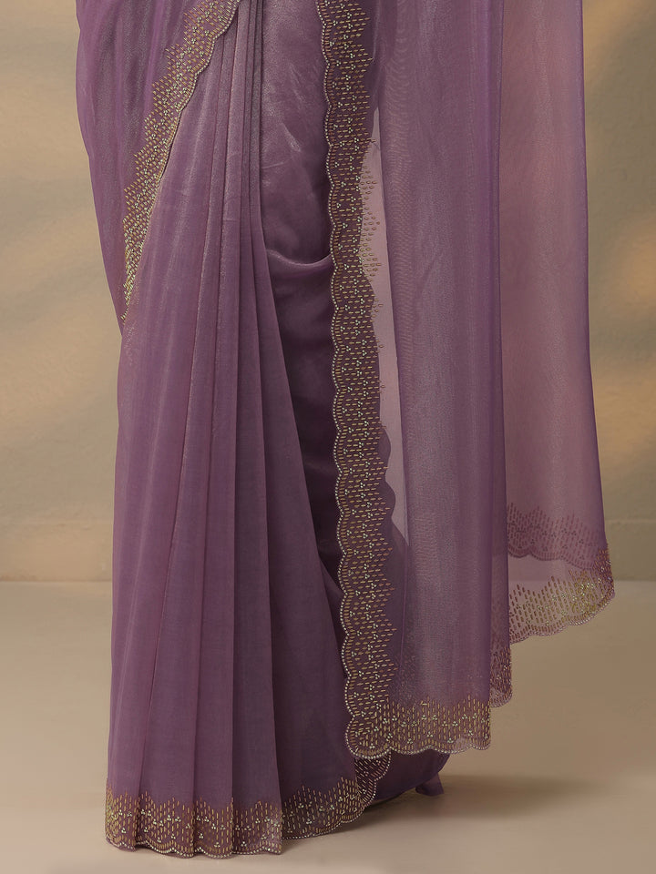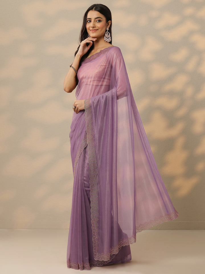 Mauve Embellished Nylon Saree With Unstitched Blouse Piece