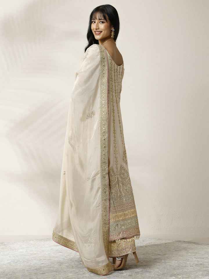 Libas Art Gold Embroidered Chinon Anarkali Suit Set With Dupatta