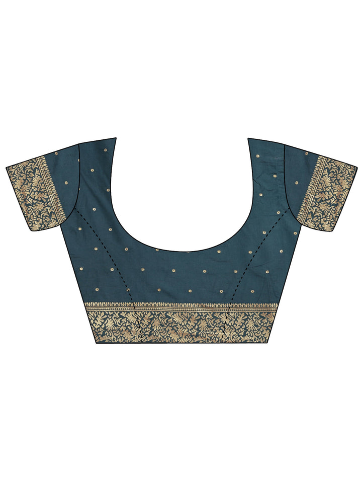 Blue Woven Design Banarsi Silk Blend Saree With Unstitched Blouse Piece