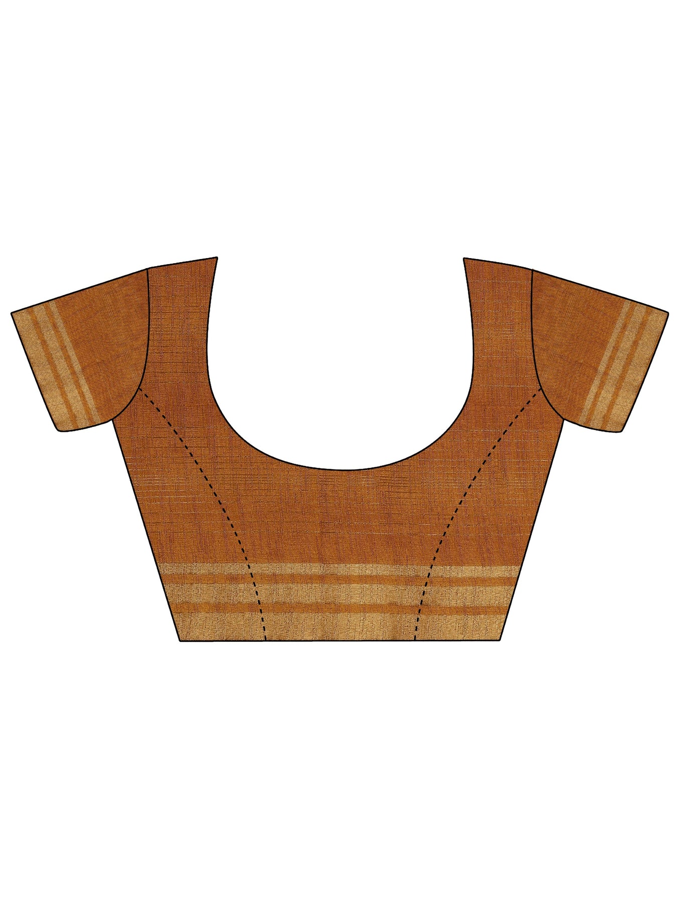 Our mustard silk blend saree features captivating ethnic motif print. Complemented with an unstitched blouse piece. This charming saree is perfect for festive occasions.