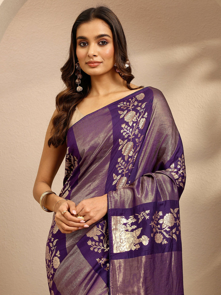 Purple Woven Design Banarsi Silk Blend Saree With Unstitched Blouse Piece