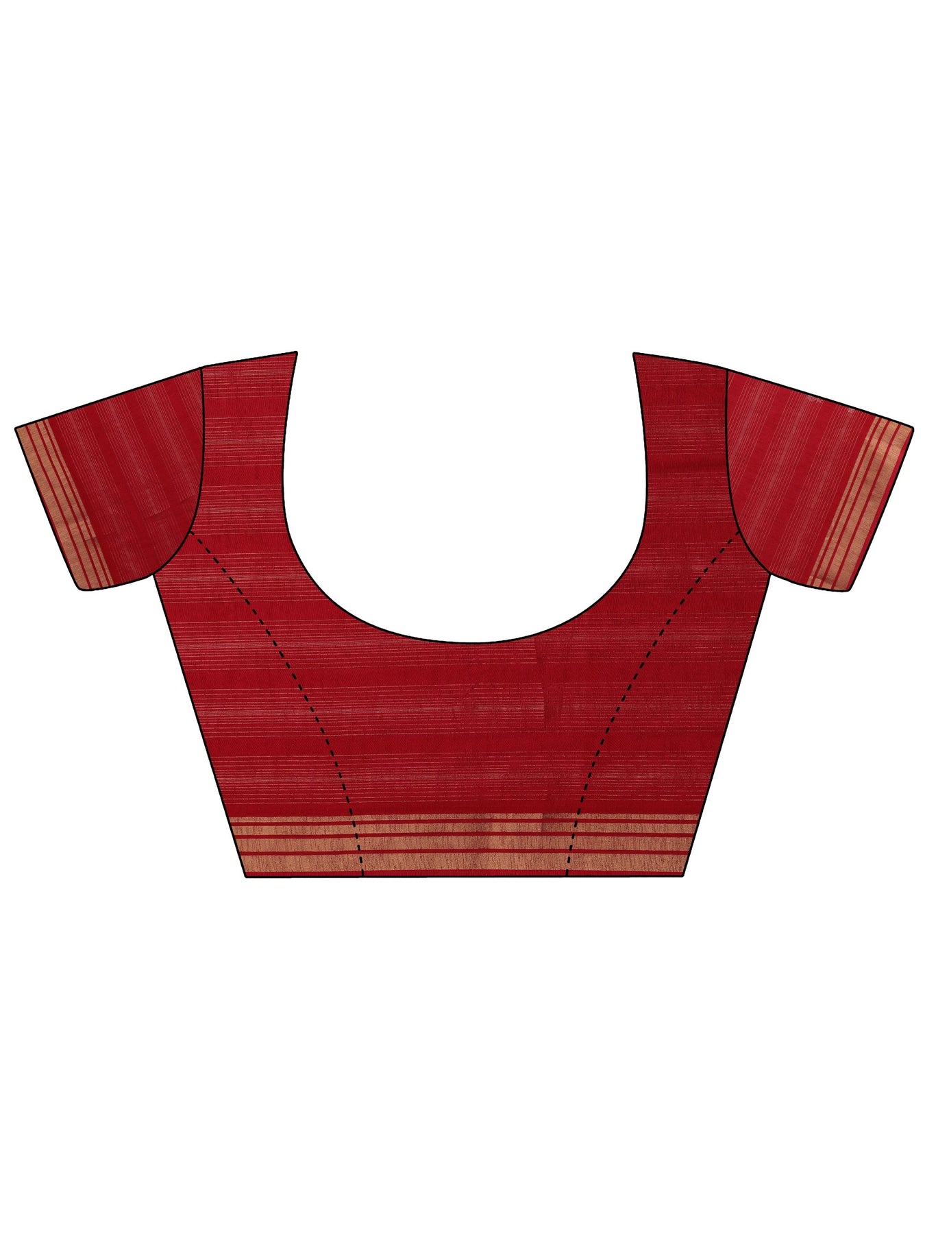 Red Printed Silk Blend Saree With Unstitched Blouse Piece