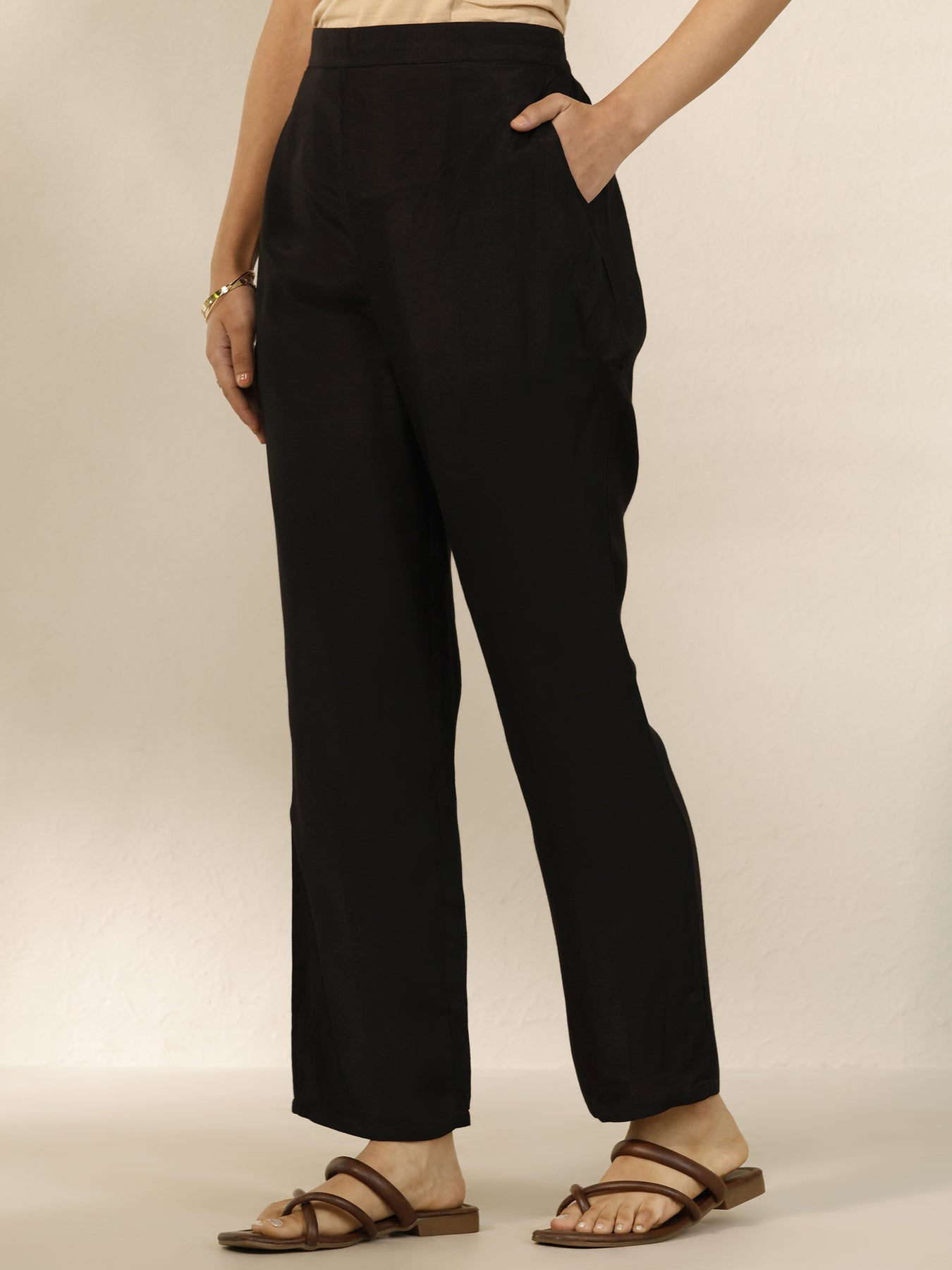 Our 3-piece Black Silk blend Kurta Set features a Straight-fit kurta with a sweetheart Neckline, Regular Sleeves, and statement yoke. Complemented with Straight Pants with a Partially Elasticated waistband and 2 pockets, and a Printed dupatta. Adorned with ethnic motif printed, this style is perfect for Dark Festive.