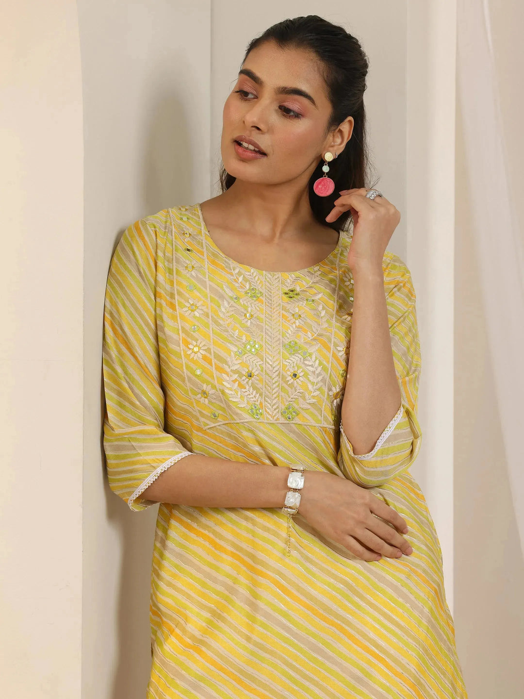 Our Yellow Silk Blend features a Straight-fit Kurta with a Round Neckline, Regular Sleeves. Adorned with Embroidered accents, this style is perfect for Casual occasions.