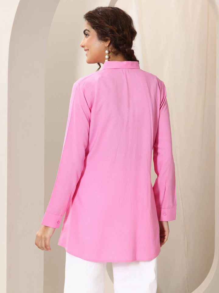 Pink Solid Rayon Straight Short Kurti