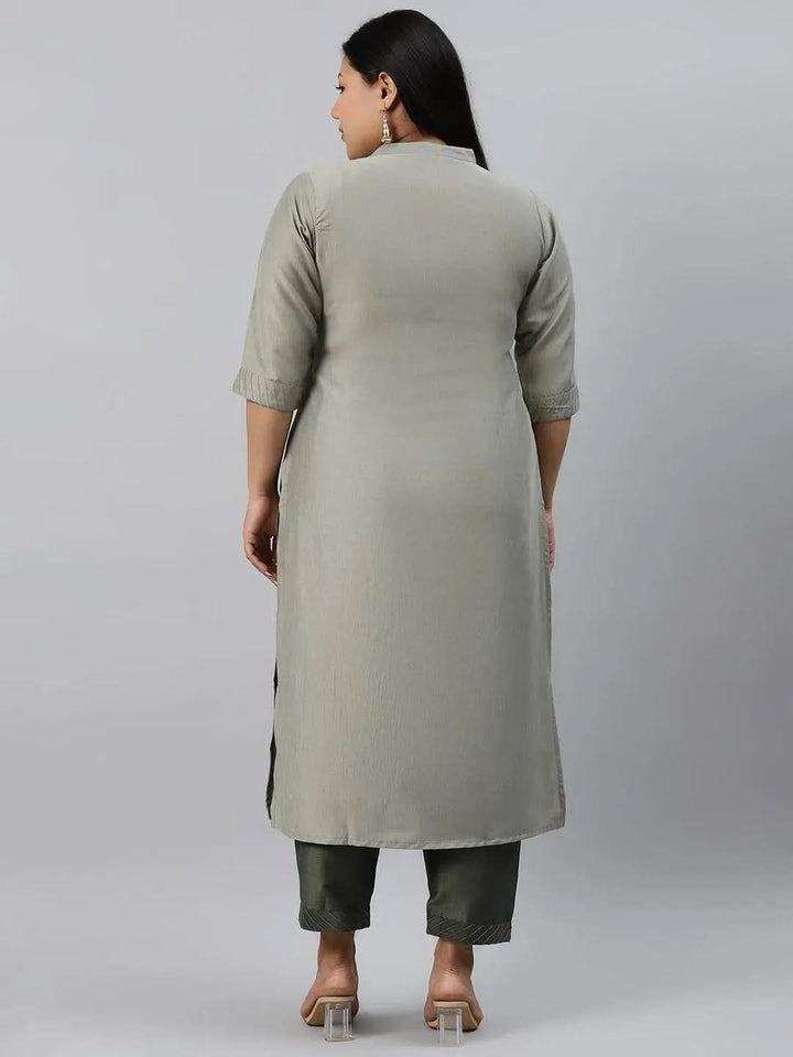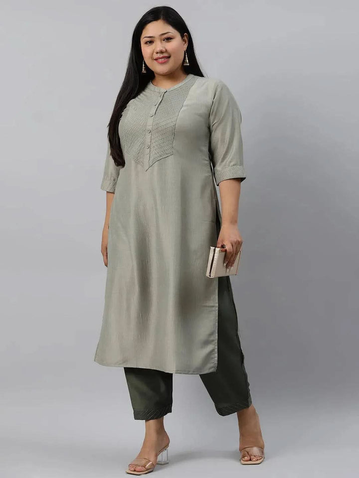 Buy Plus Size Green Solid Silk Kurta - 11064-3XL | Libas Ethnic Wear Online