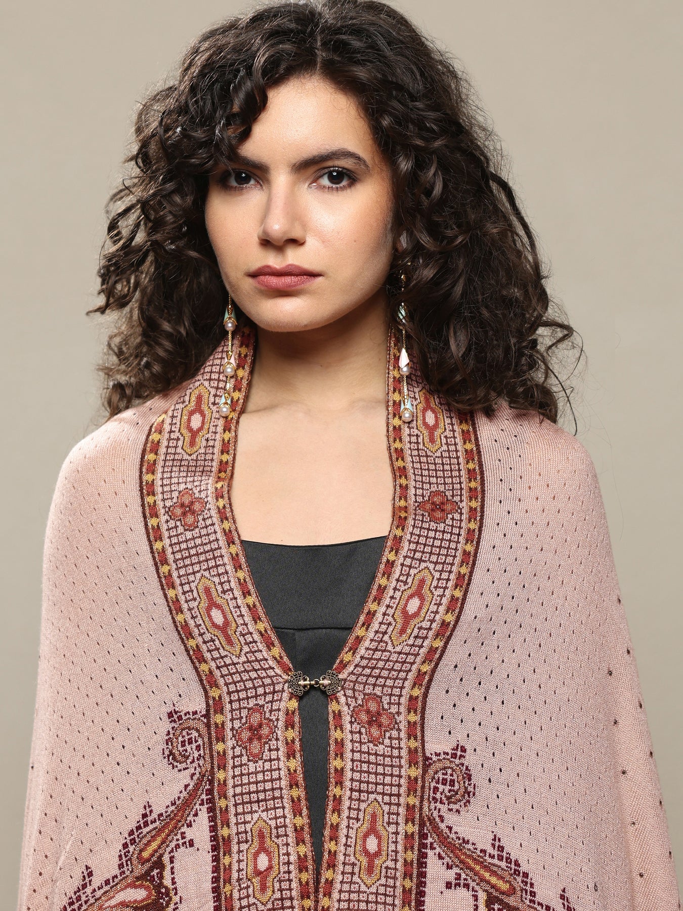 Blush pink woolen shawl featuring intricate woven designs inspired by traditional heritage motifs. Designed to keep you warm and stylish, this versatile wrap pairs effortlessly with your kurta set or saree for festive and winter celebrations. Tailored with detailed border embellishments, this shawl ensures both comfort and elegance in every drape. The shawl also includes a soft-drape finish for enhanced usability.