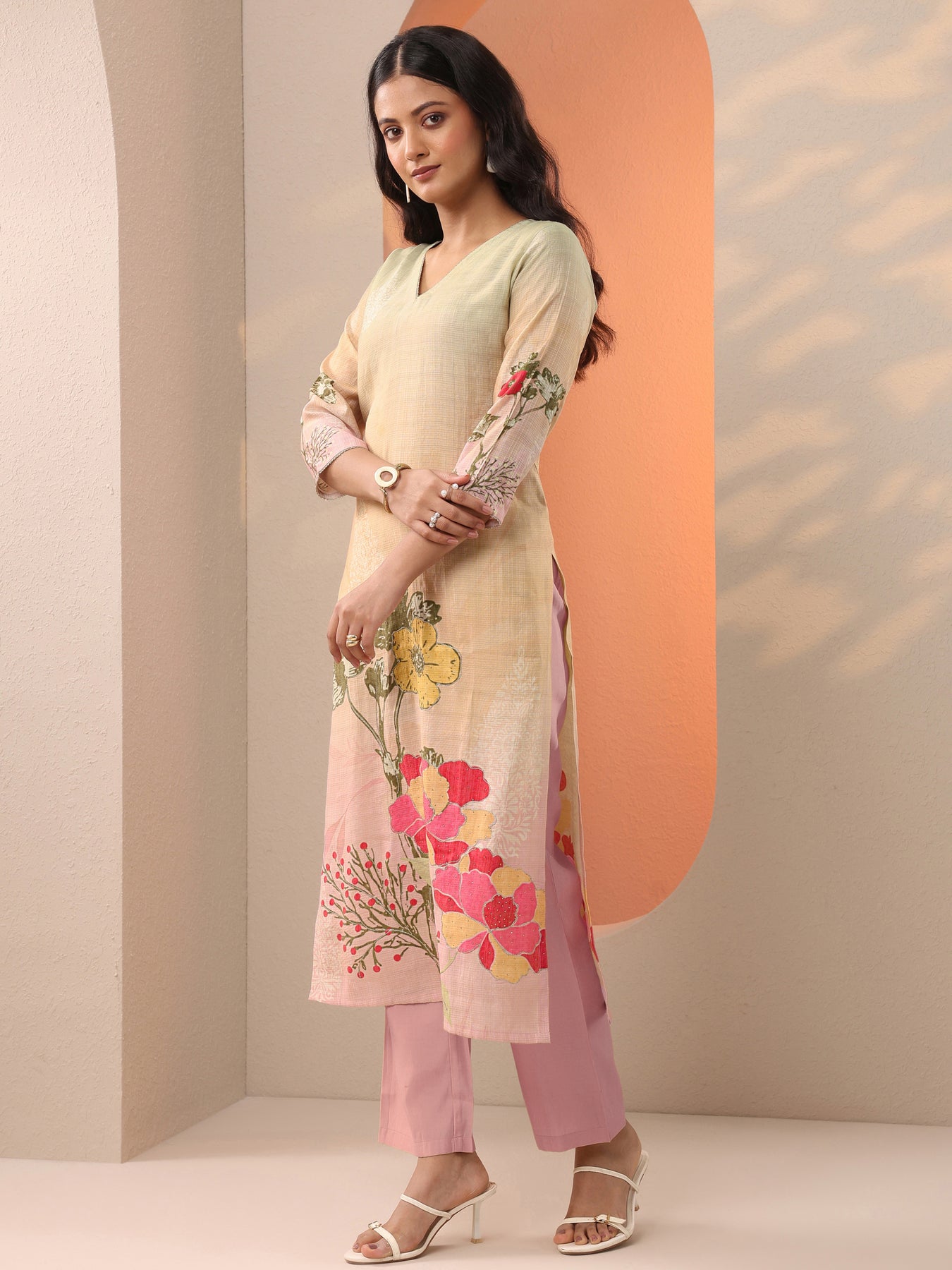 Pair this floral kurta with gold jewellery, a clutch bag, and embellished juttis for festive occasions.
