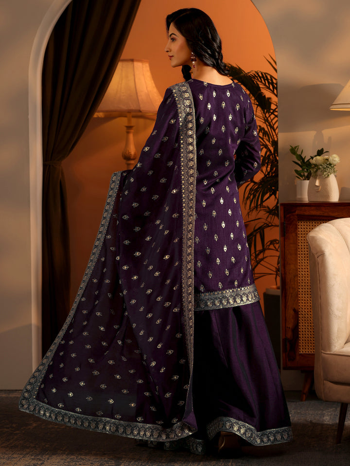 Libas Art Magenta Woven Design Silk Blend Anarkali Suit Set With Dupat