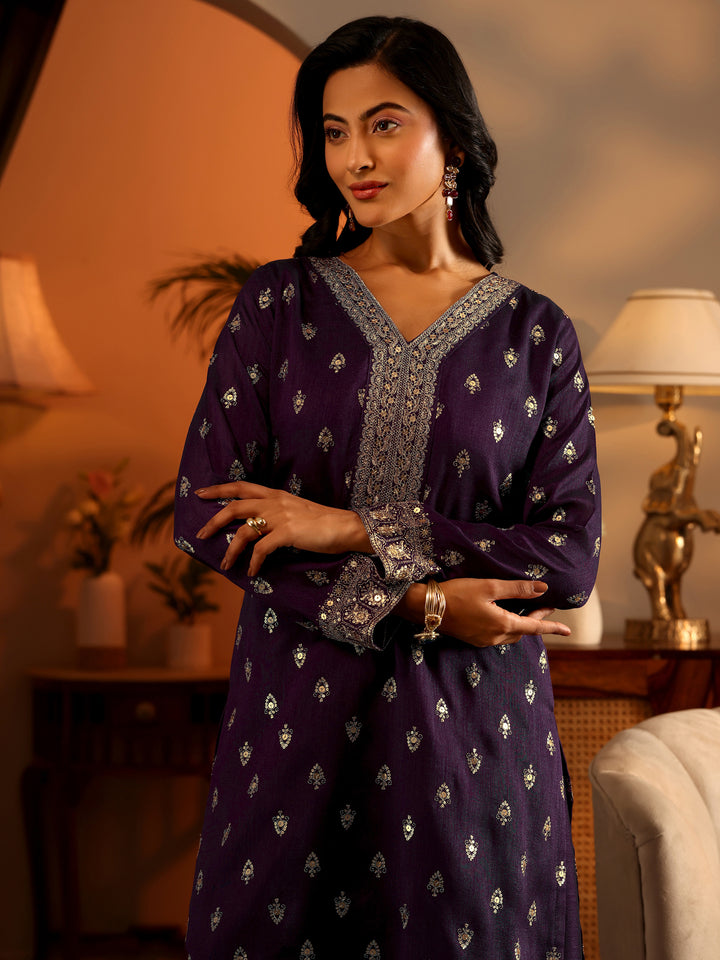 Libas Art Magenta Woven Design Silk Blend Anarkali Suit Set With Dupatta