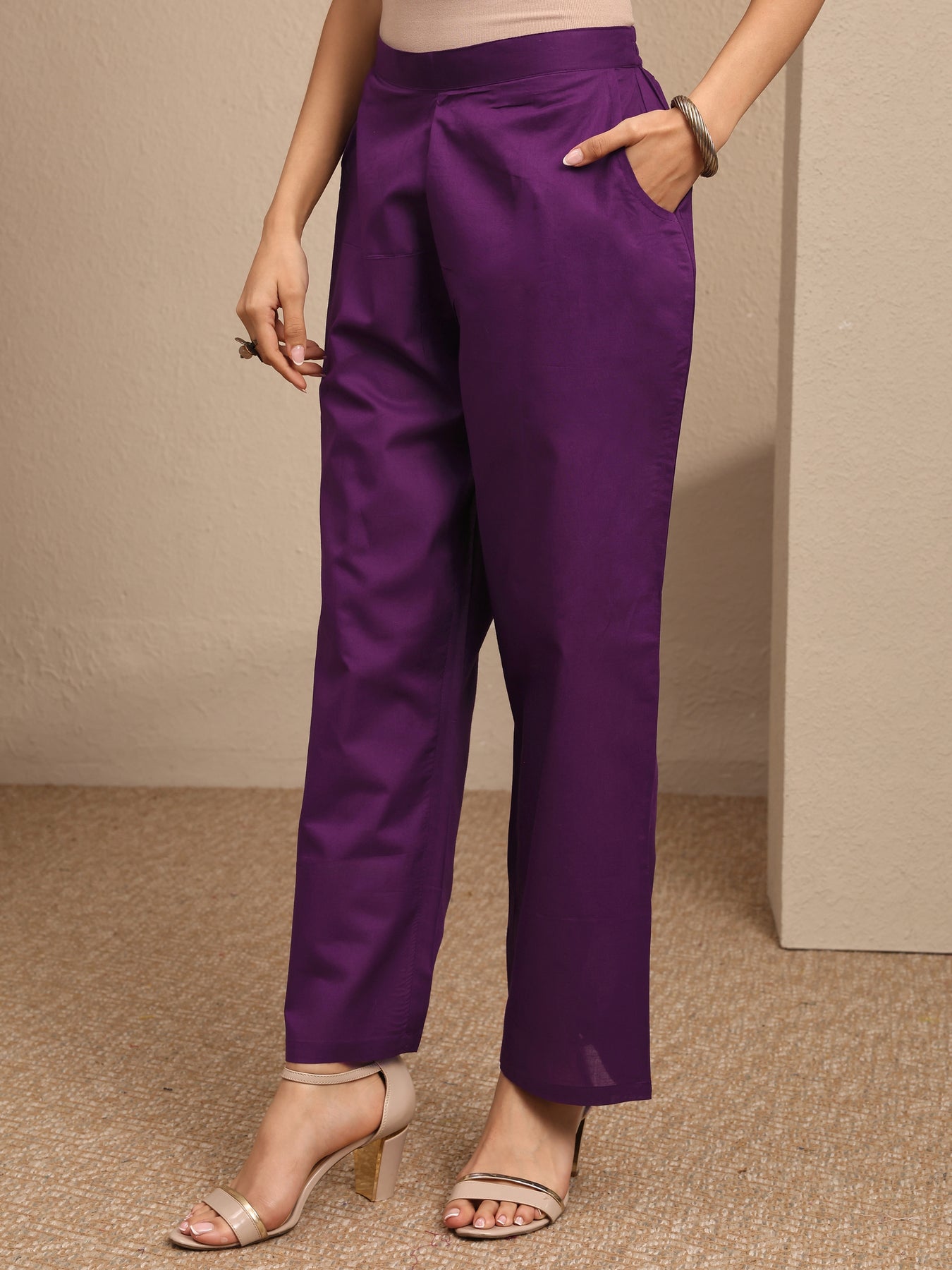 Purple Embroidered Silk Blend Straight Suit Set With Dupatta