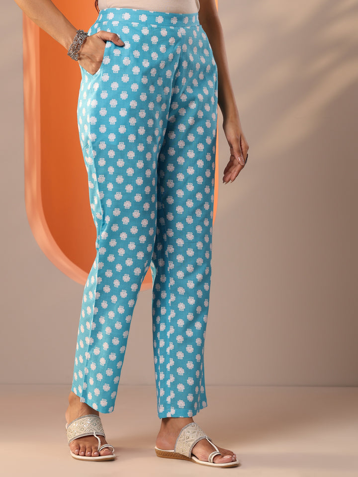Our 3-piece Turquoise Blue Cotton Straight-Fit Kurta Set features a Round Neckline, Regular Sleeves, and statement Yoke. Complemented with Straight Pants with a Partially Elasticated waistband and 2 pockets, and a Floral dupatta. Adorned with Floral Printed accents, this style is perfect for Semi Festive occasions.