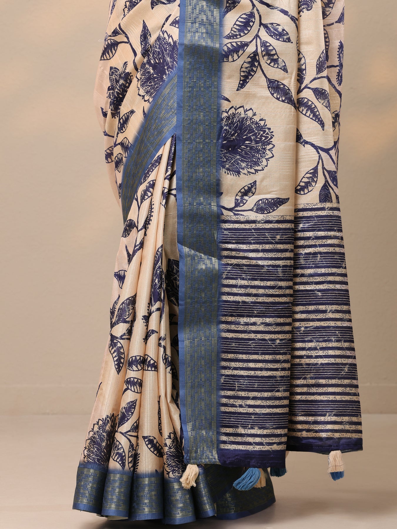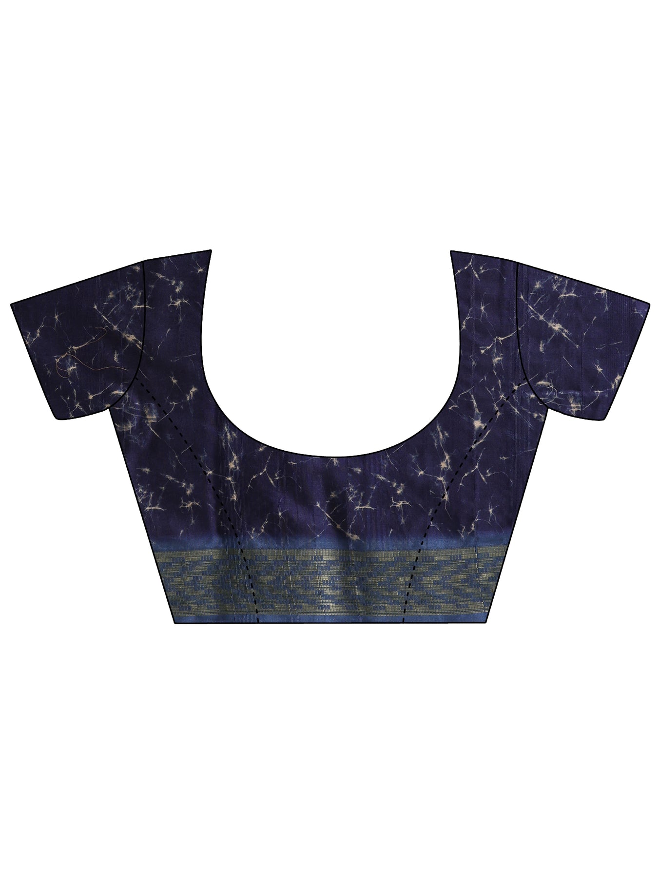 Blue Printed Silk Blend Saree With Unstitched Blouse Piece