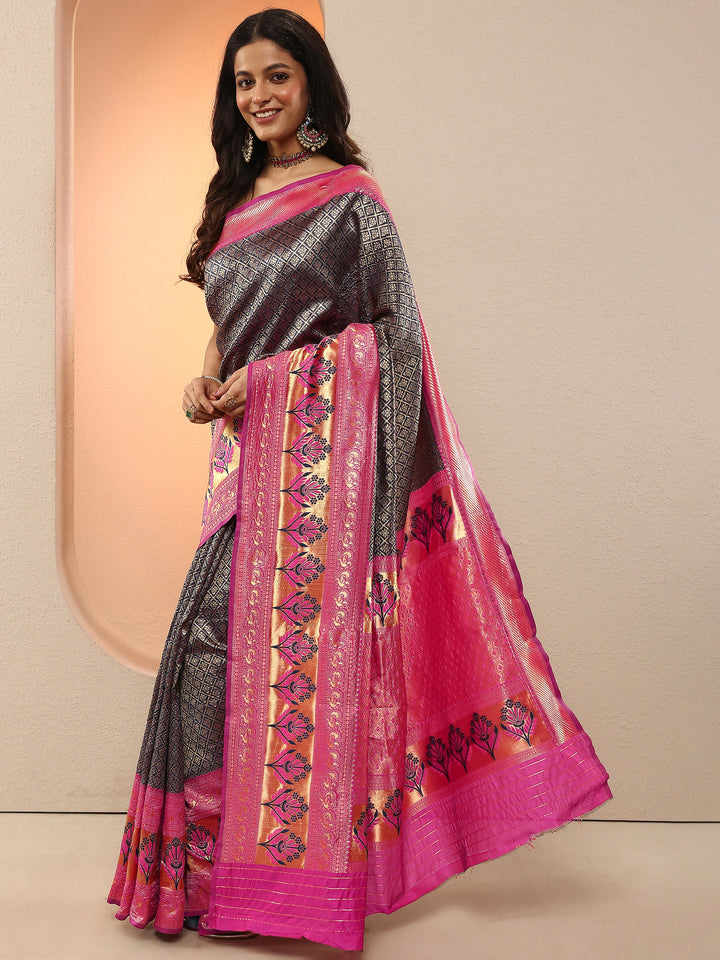 Blue Woven Design Silk Blend Sarees With Unstitched Blouse Piece