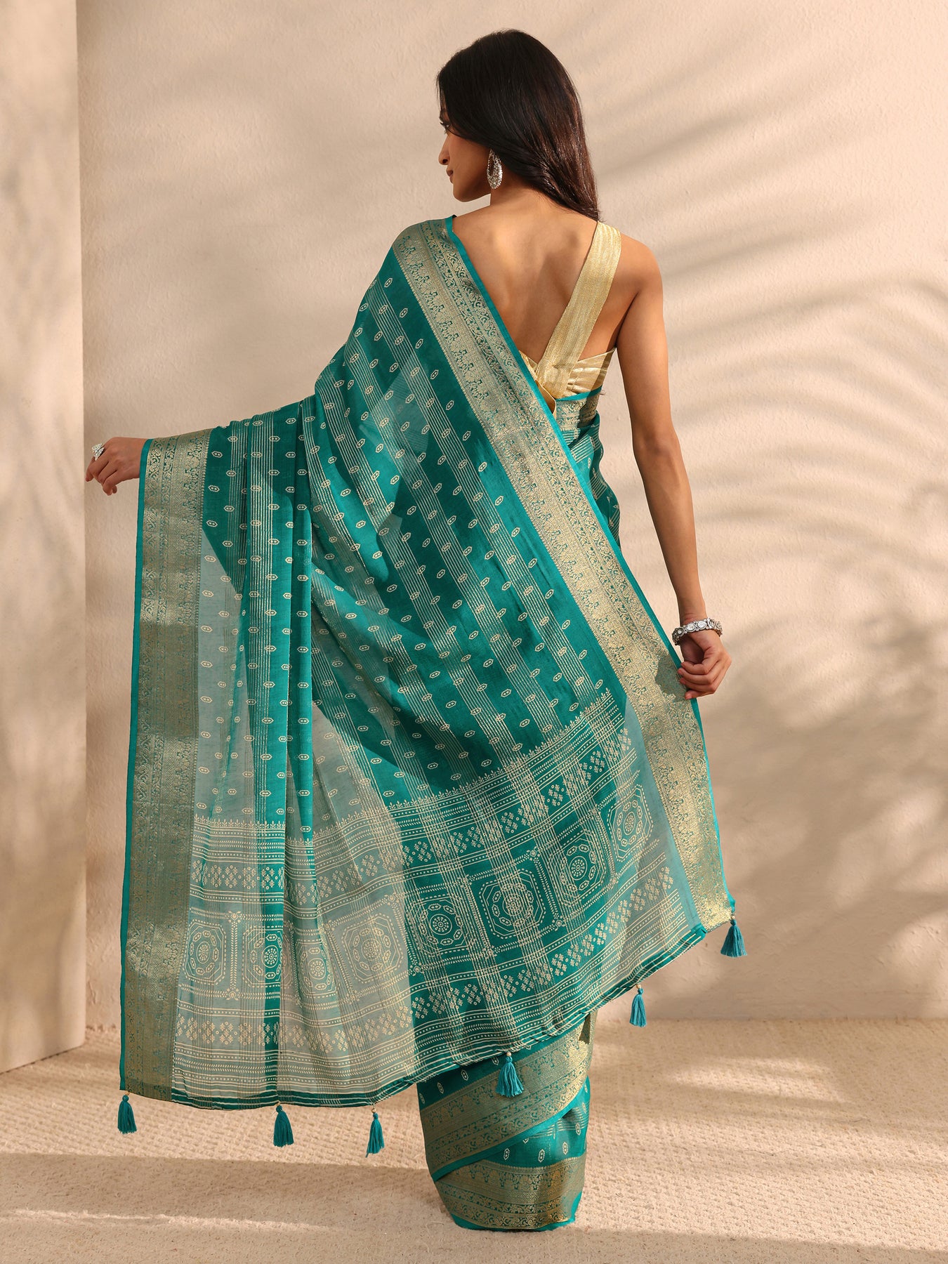 Green Ethnic Woven Silk Blend Saree With Unstitched Blouse Piece