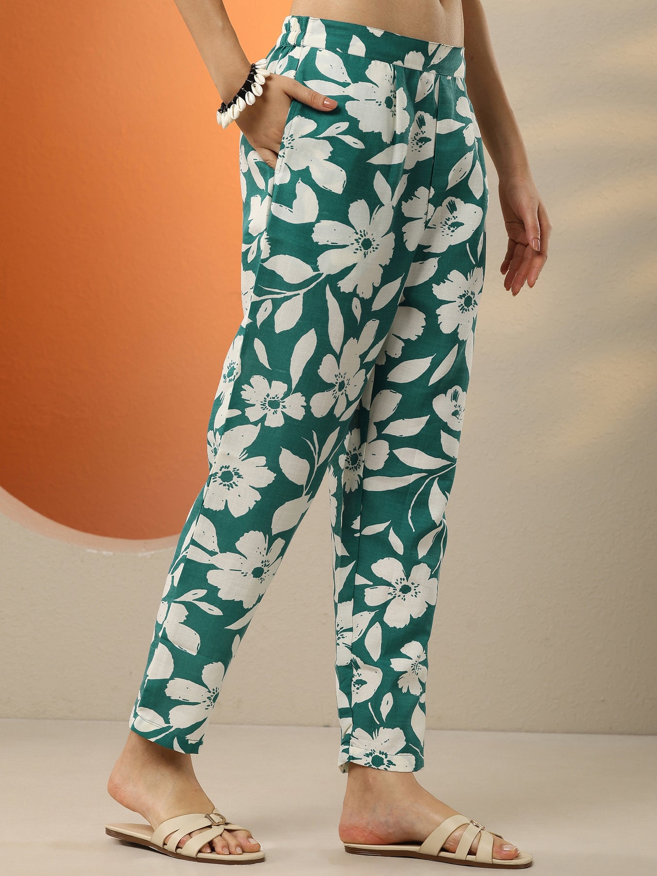 Green Printed Cotton Blend Co-Ord Sets